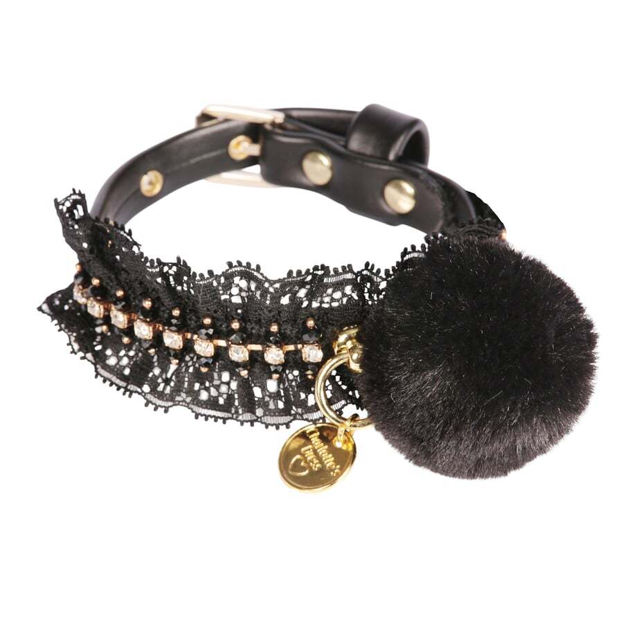 柔らかなフェイクレザーを使用した生地にラインストーンチェーン、レース、ポンポンで装飾したキラキラ輝くデザイン♡