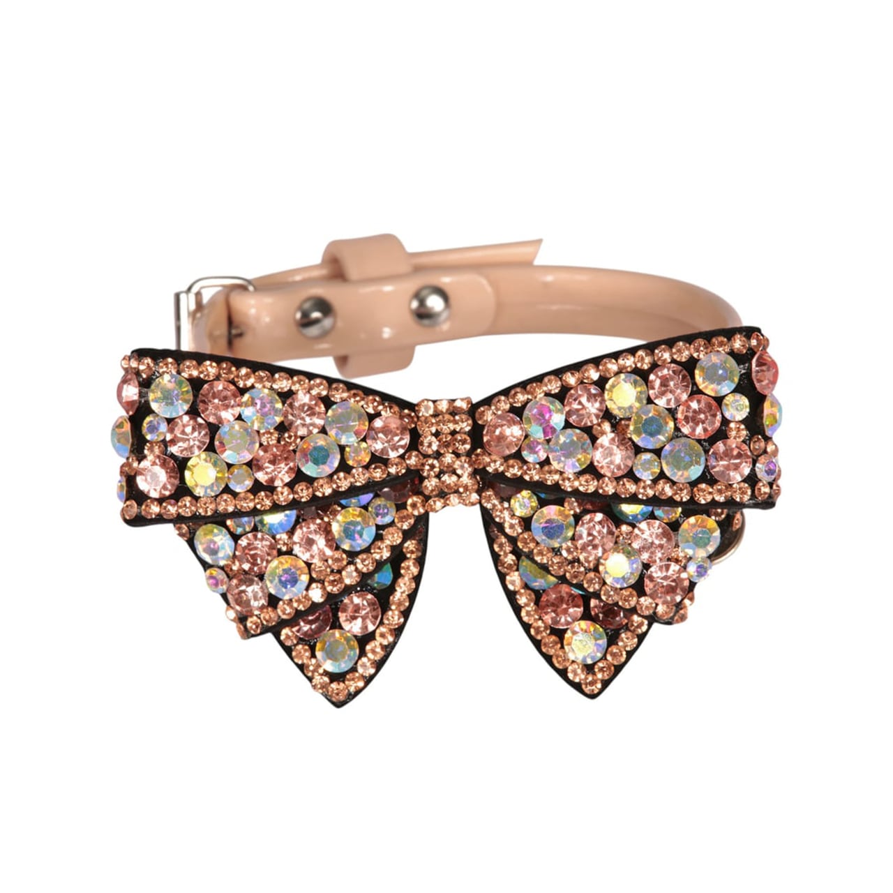 フェイクレザー調にラインストーンをちりばめた華やかなリボンがあしらわれています♡