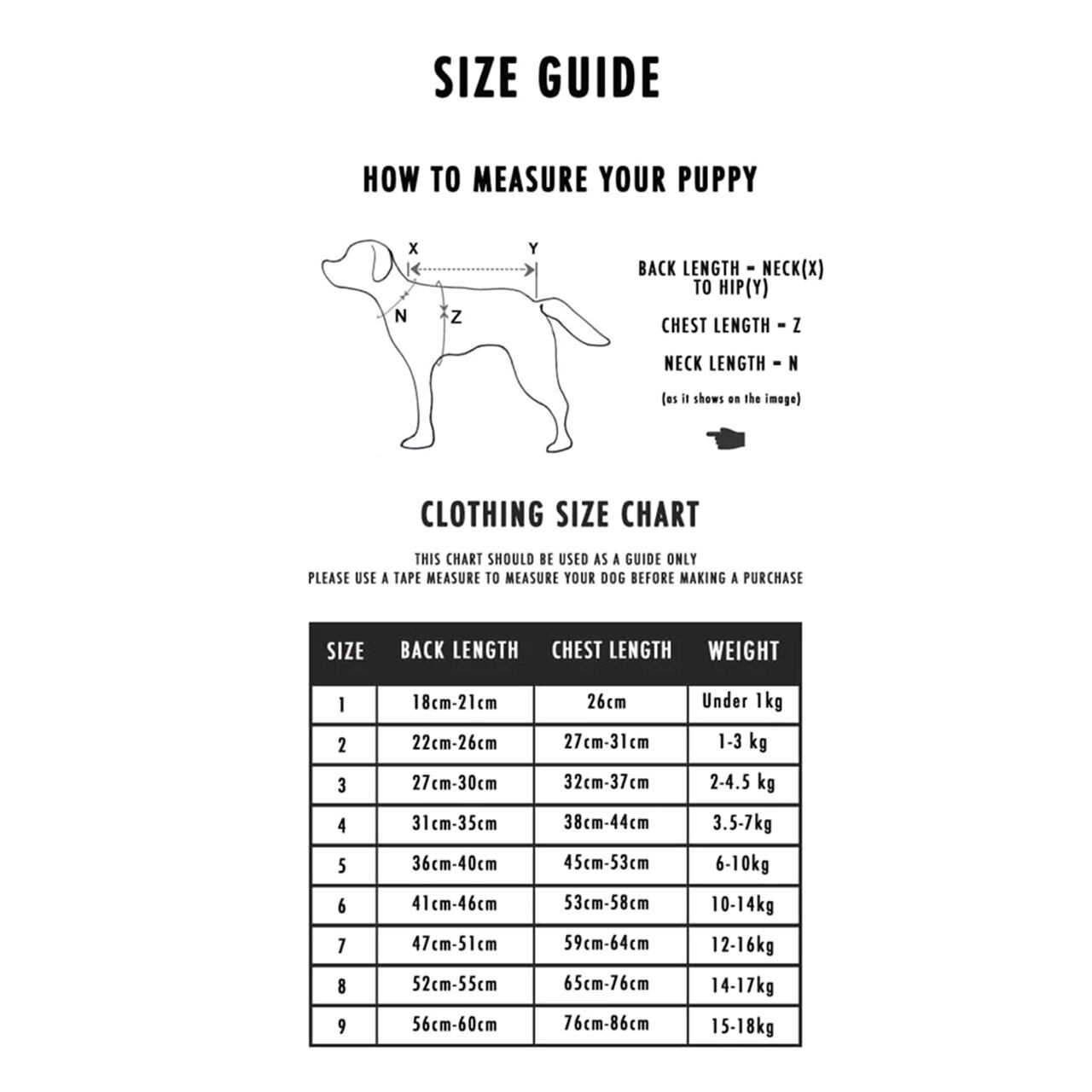 【Size】写真の表の各サイズが標準です。