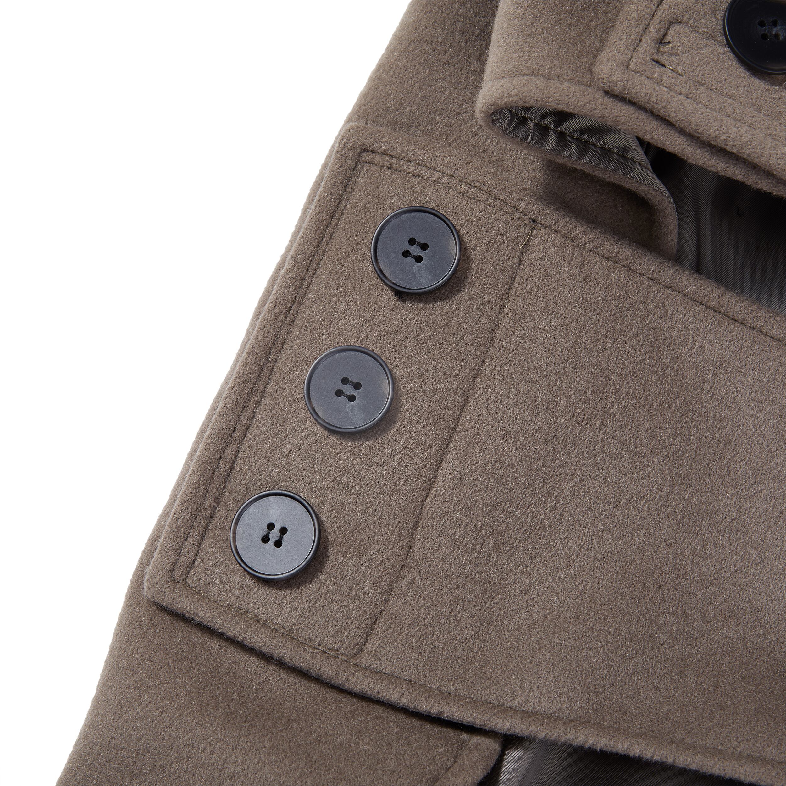身体にフィットしやすい調整可能なデザインで、しっかりと暖かいカシミア混ウールコート。