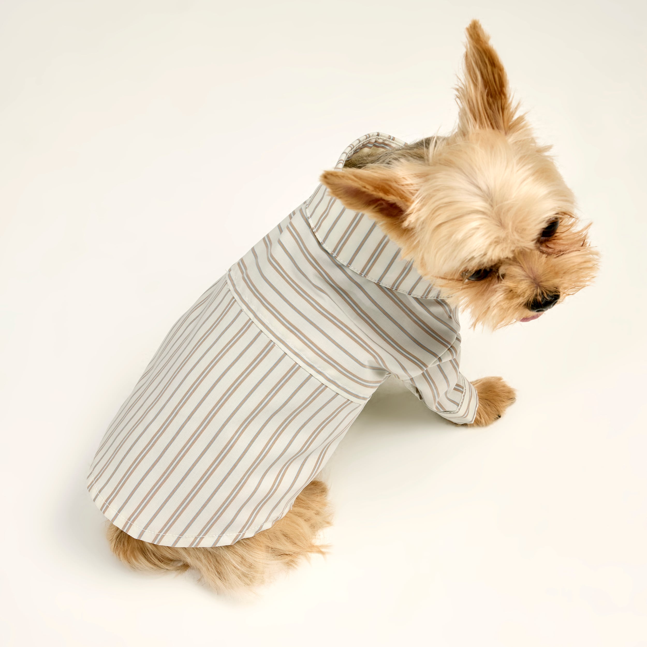 細めのストライプ柄がさりげなくスタイルを整えるシャツ。