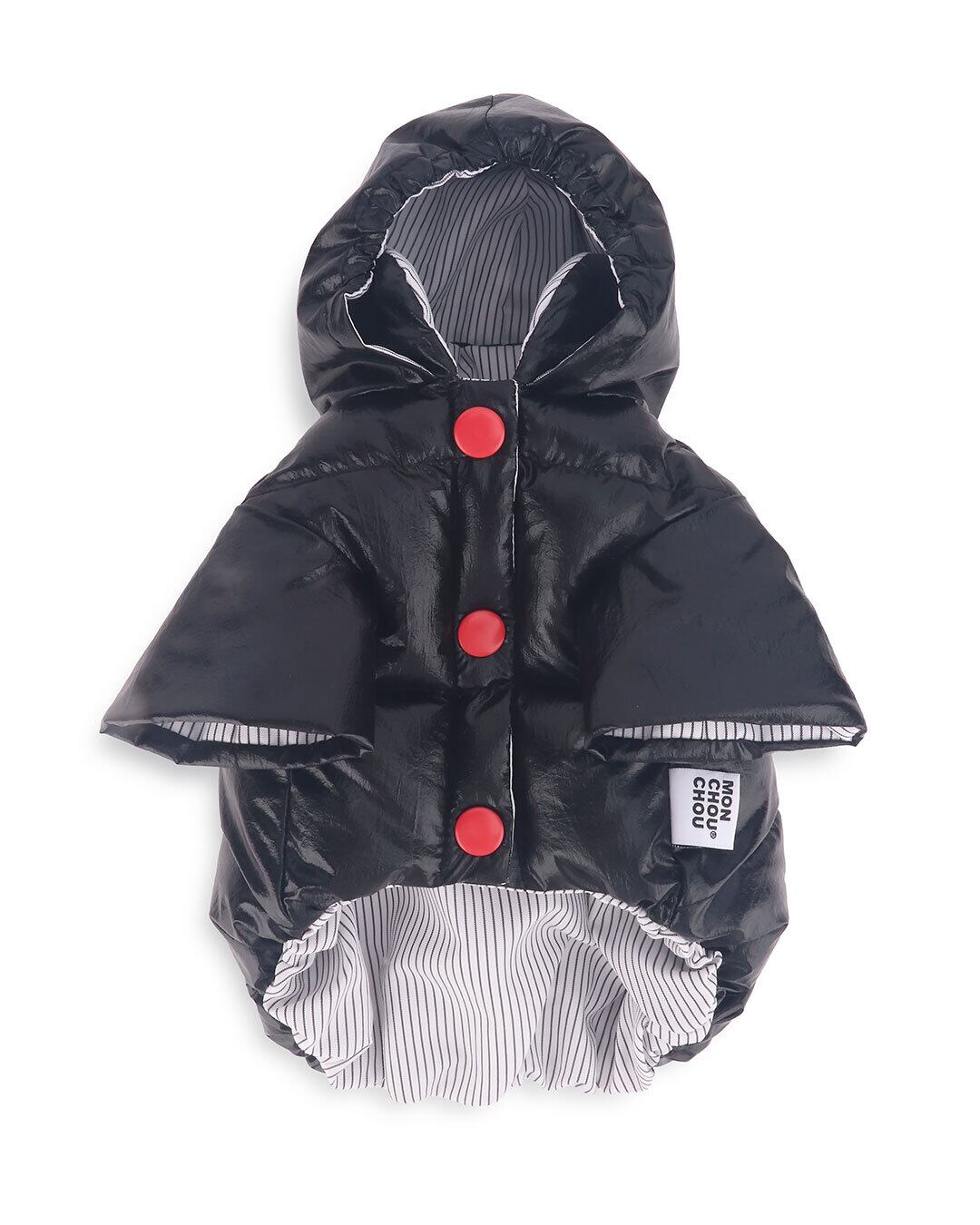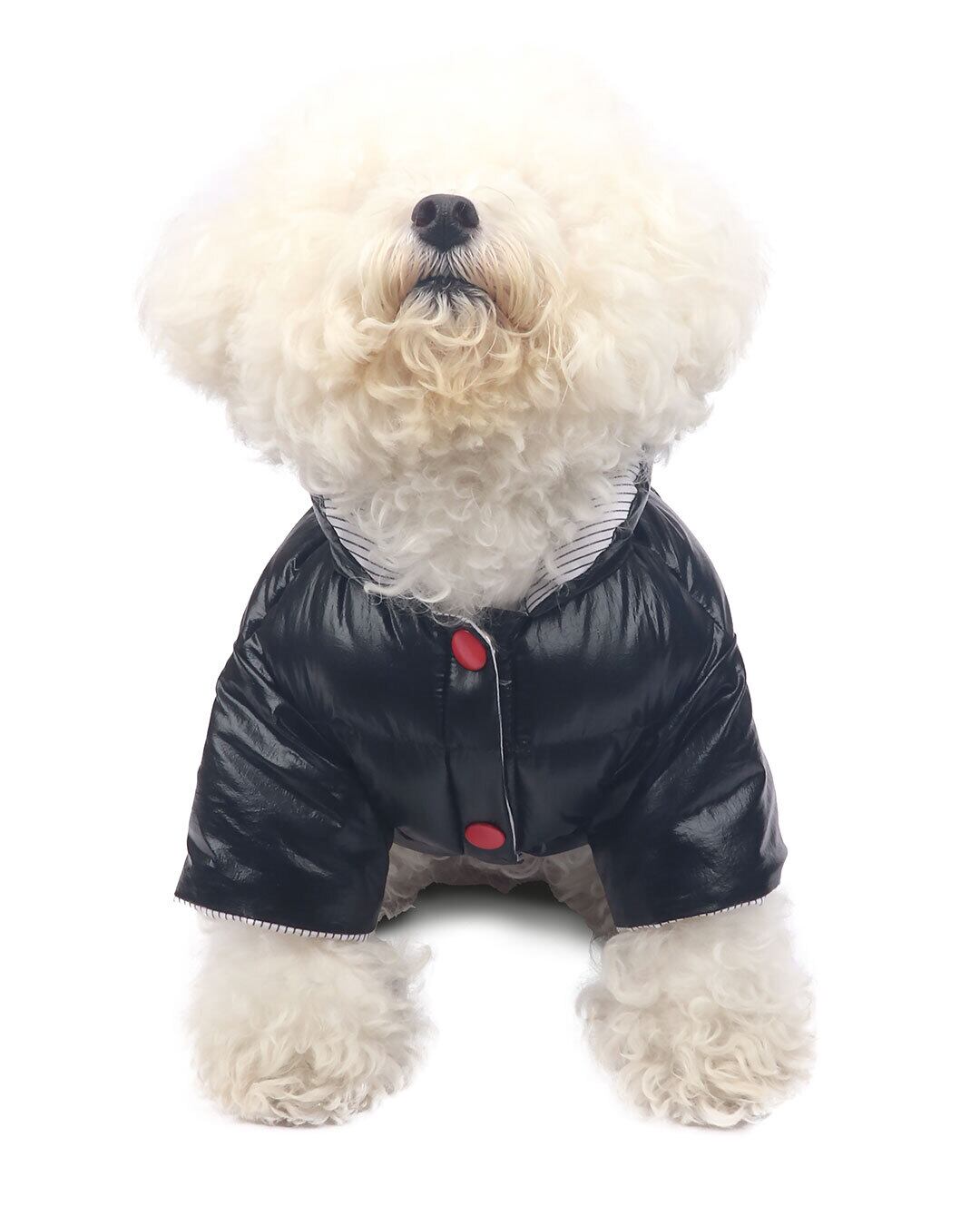 撥水コーティングされた生地を使用しているため、雪や雨の日でも優れた防護性を発揮します!首元部分にはリードを通せる便利なホール付きで、お散歩ももっと快適に。