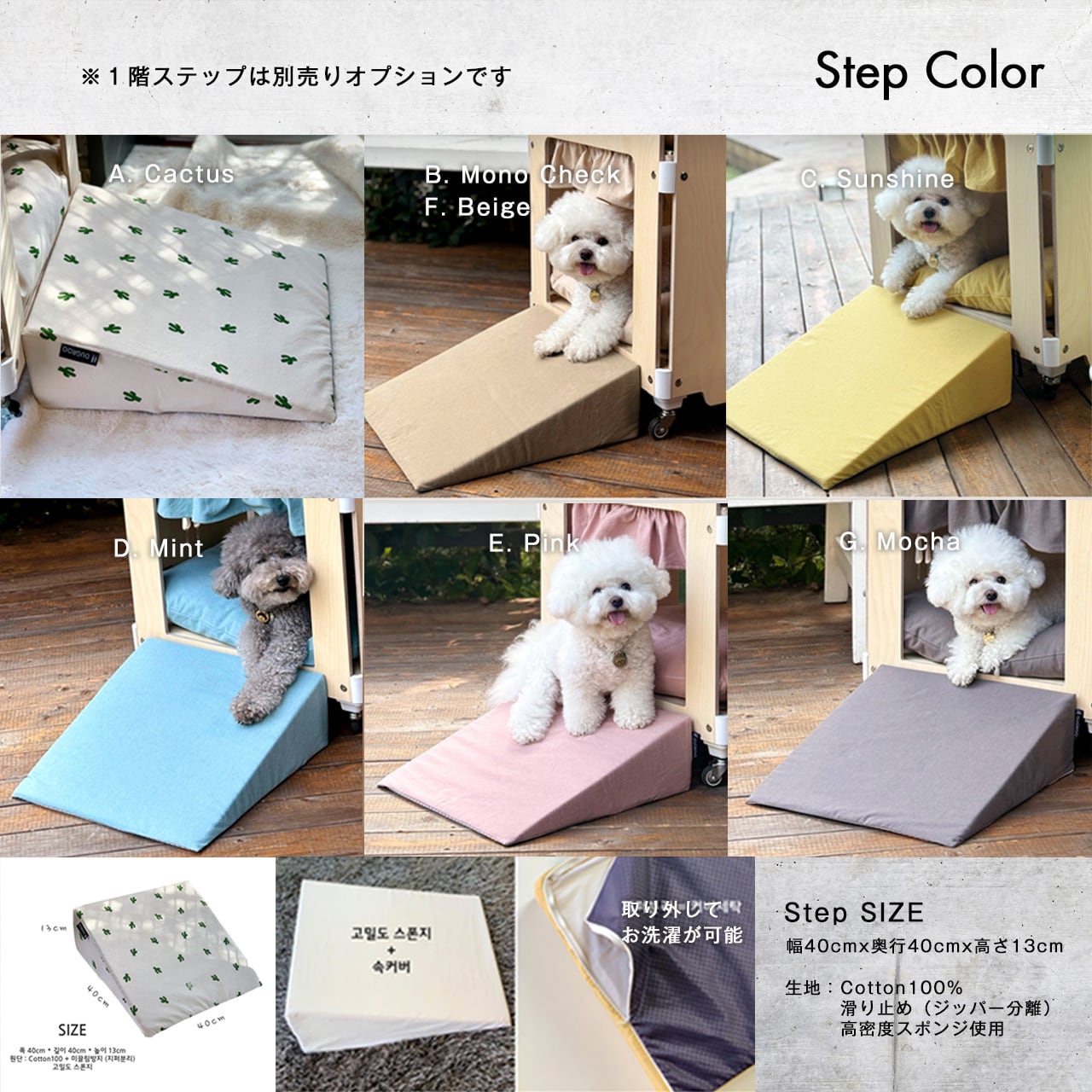 ※1階をハウスとして使う場合、小さなワンちゃん(〜4kg程度)はステップ付きの方が入りやすいことがあります