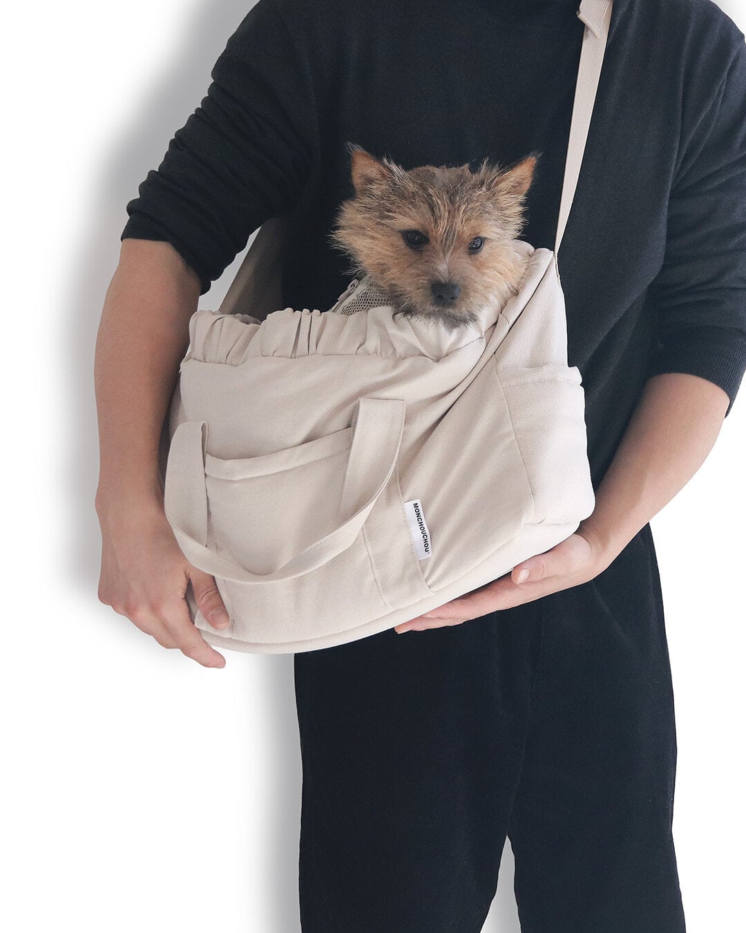 わんちゃんを優しく包み込み、安定して支えるコットンスリングバッグです♪
