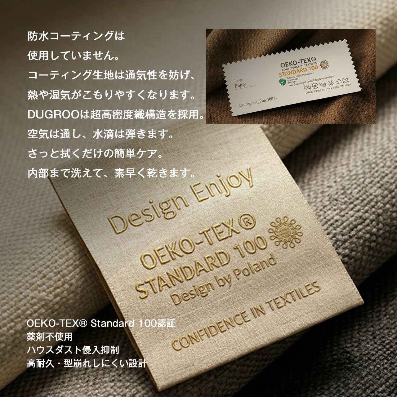 OEKO-TEX® STANDARD 100認証取得生地を採用。