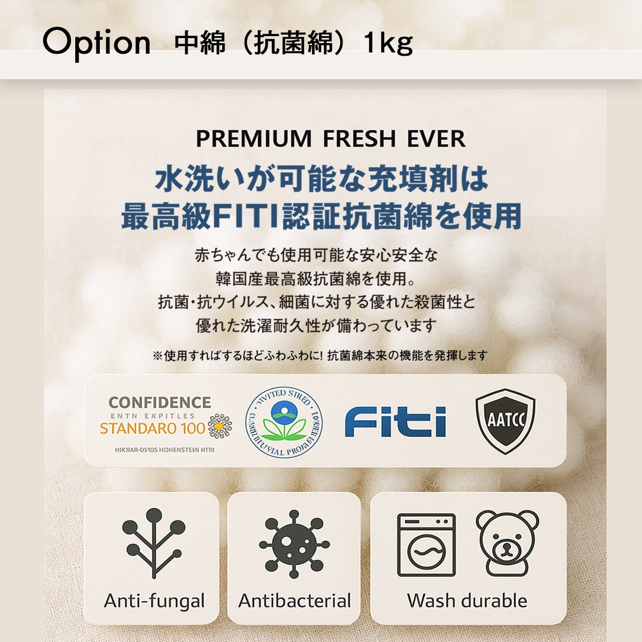 ※中綿を補充されたい方は、最高級抗菌綿1kgの購入も可能です。