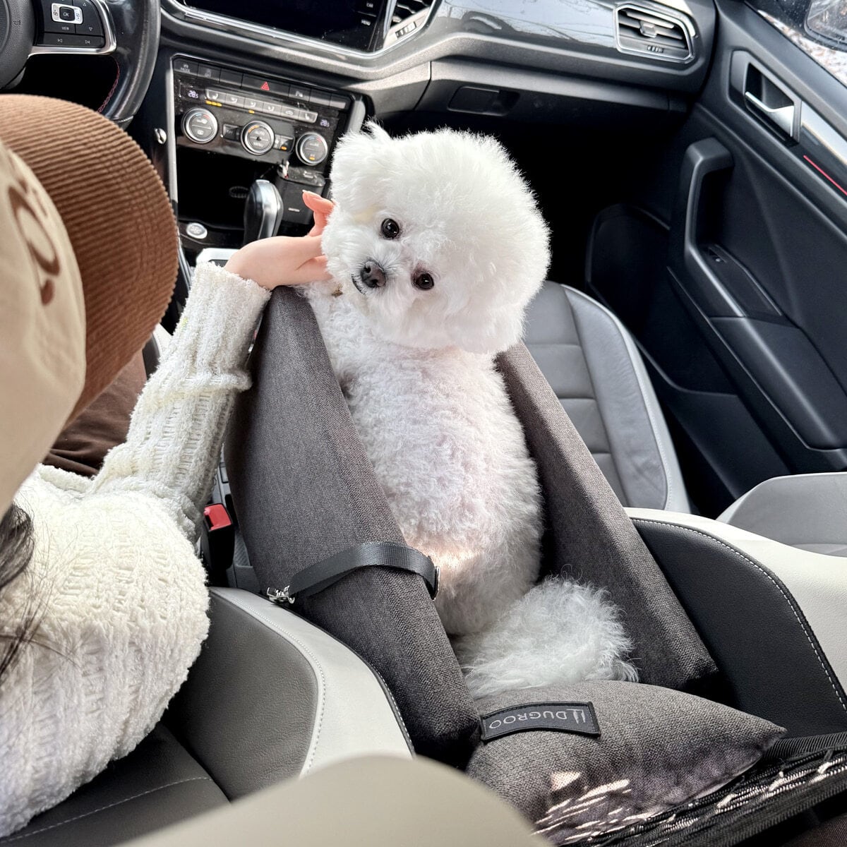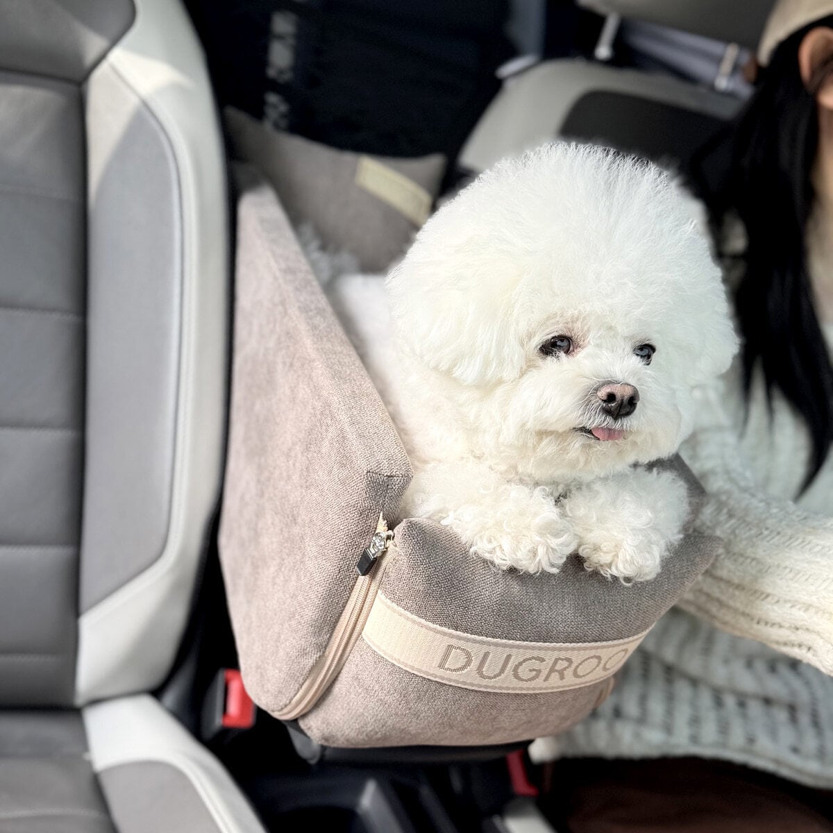 ご注意)運転席と助手席のシート間隔が24〜31cmの車両はタイプはLサイズ(9kg未満のペットにおすすめ)となります。「New Age Console Box Car Seat -L Size」をご購入ください。