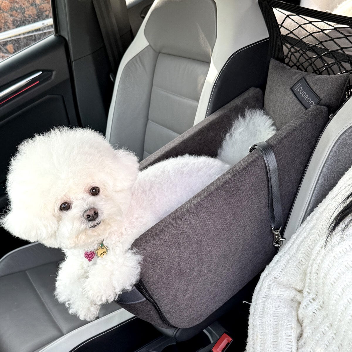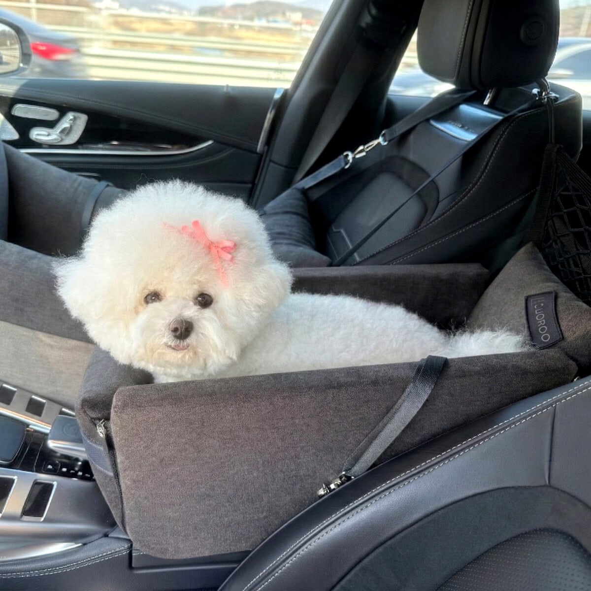 ご注意)運転席と助手席のシート間隔が24〜31cmの車両はタイプはLサイズ(9kg未満のペットにおすすめ)となります。「New Age Console Box Car Seat -L Size」をご購入ください。