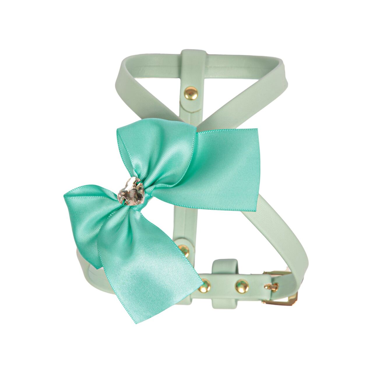 サテンリボンでおしゃれなエコレザーの首輪。ハートのストーンが可愛く装飾されています♡