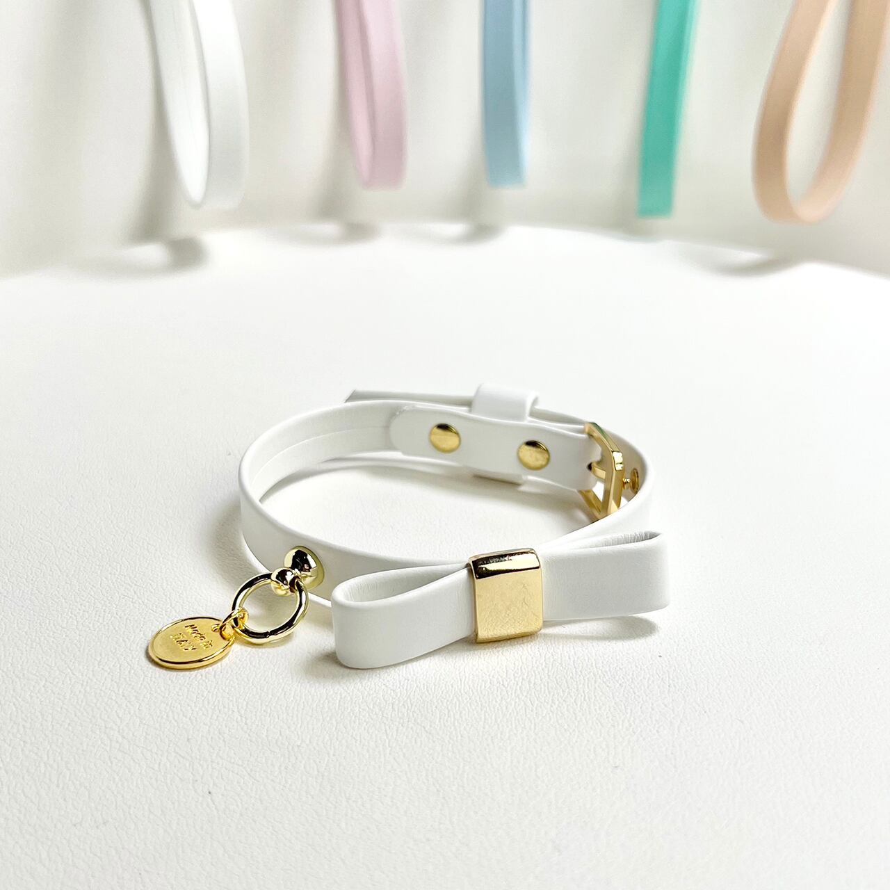 リボンが装飾され、シンプルでエレガントなデザインの首輪。シーンを選ばずお使いいただけます♪(こちらは首輪のみです)