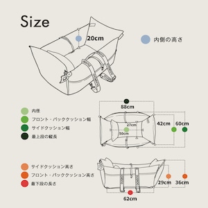 ※クッション厚み込みの外寸です。測り方により±3〜5cm差が出る場合あり。