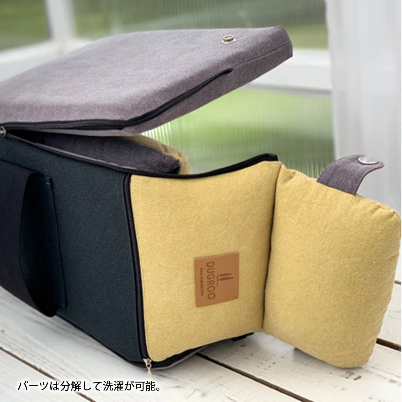 バッグとして使用できる専用カバーバッグ 4通りの持ち方も可能で愛犬が傾きにくく、移動にも使用したい方にはとても便利なバッグです。(写真参照)