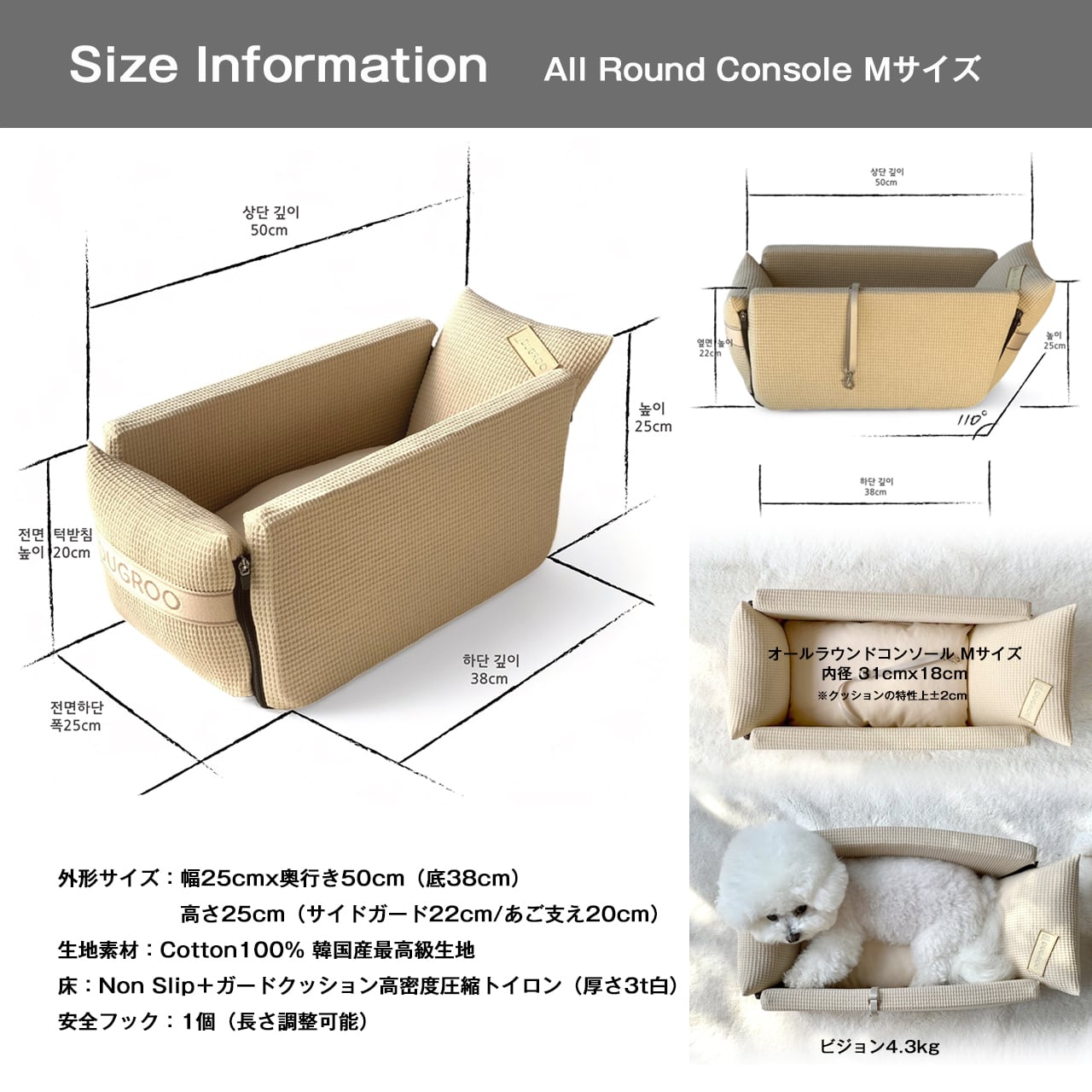 即納 All Round Console Box Car Seat -M Size【Beige】/ Dugroo / 日本未入荷