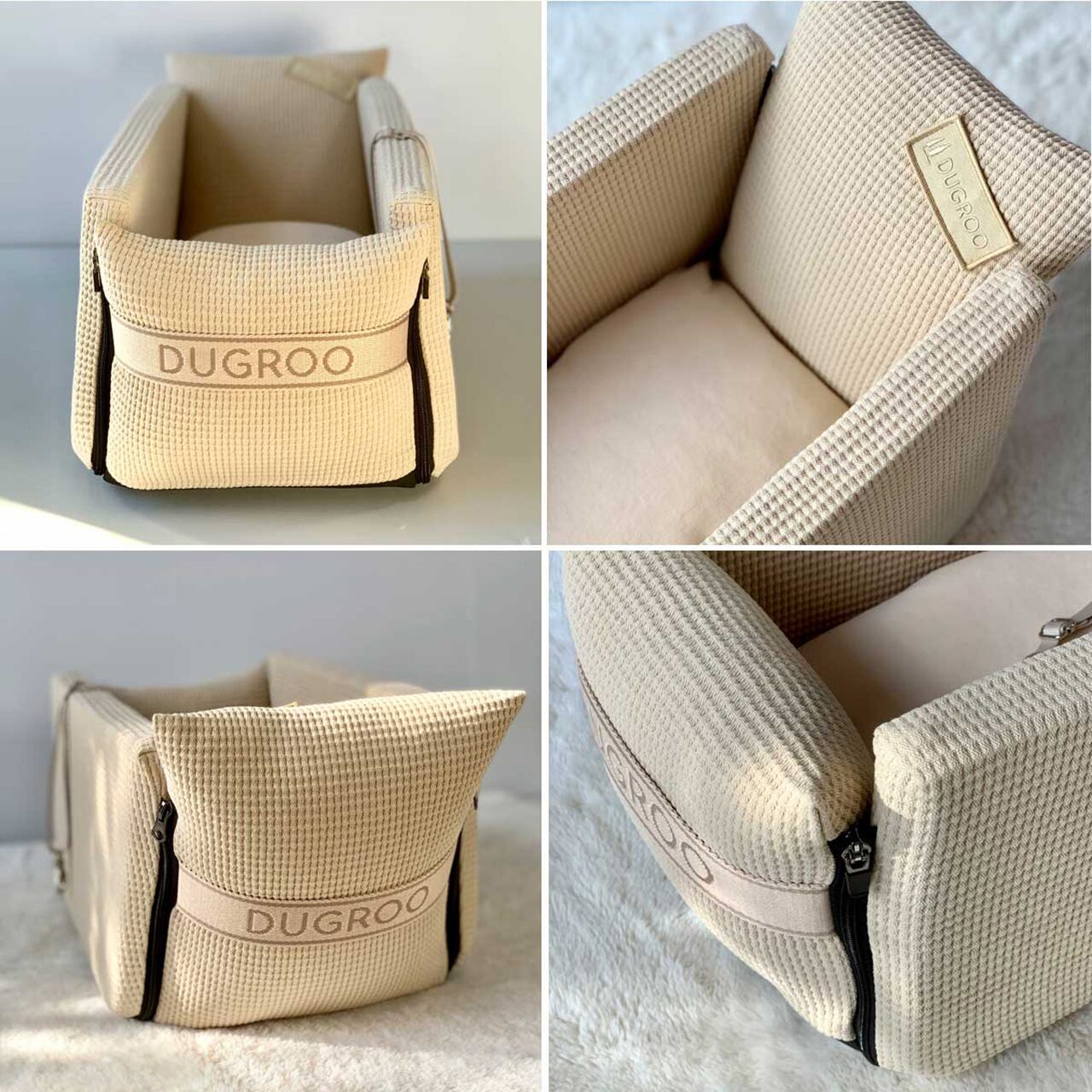 DUGROOのコンソールボックスは安全性を第一に考え、素材から含め全てデザイン設計されています。素材は最高級のコットン100%の素材で製作されお洗濯が可能。肌がふれても安心でかわいい我が子たちには常に清潔な空間で過ごしてもらいたいというデザイナーの思いが込められています。