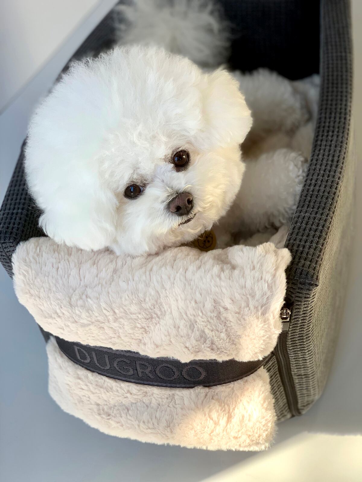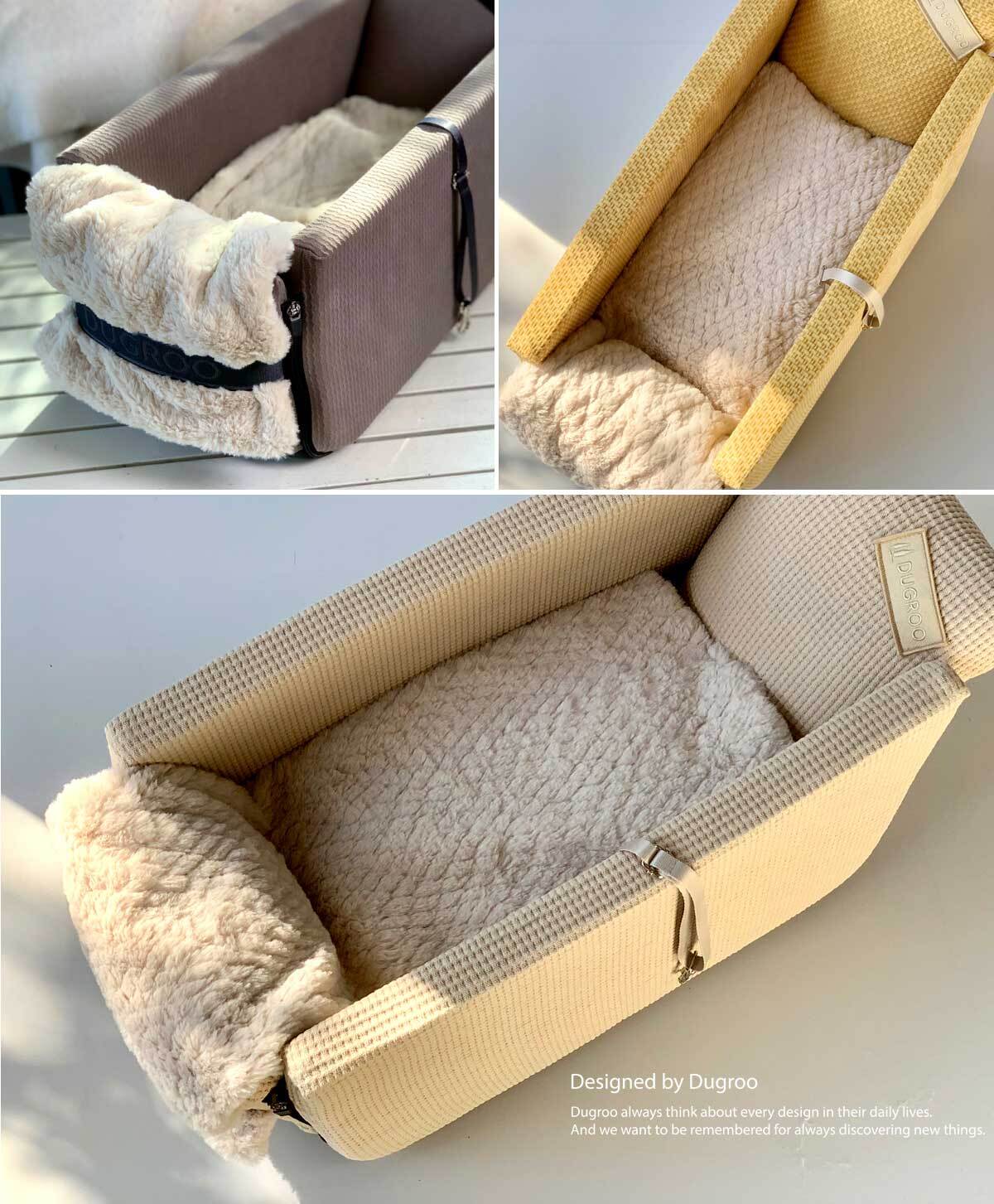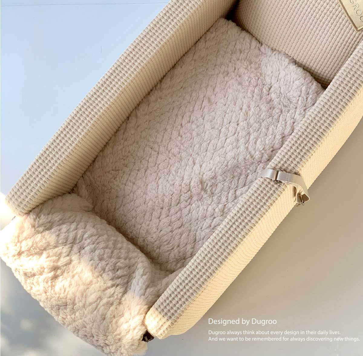 ふんわりとした起毛素材が、移動中の愛犬の体をやさしく包み込み、