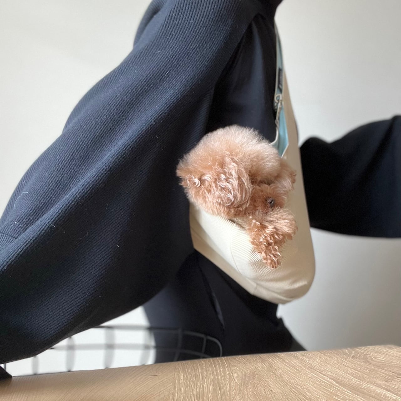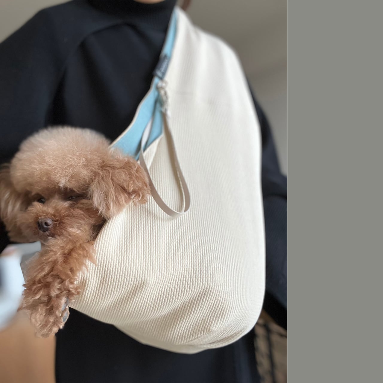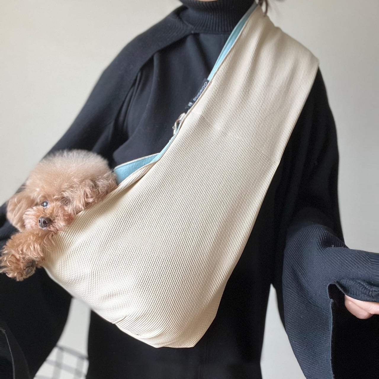 従来のスリングバッグよりも奥行き感があり、オーナー様の身体にも少しフィットするように着用することで、オーナー様と愛犬がより安定して使用することができます。