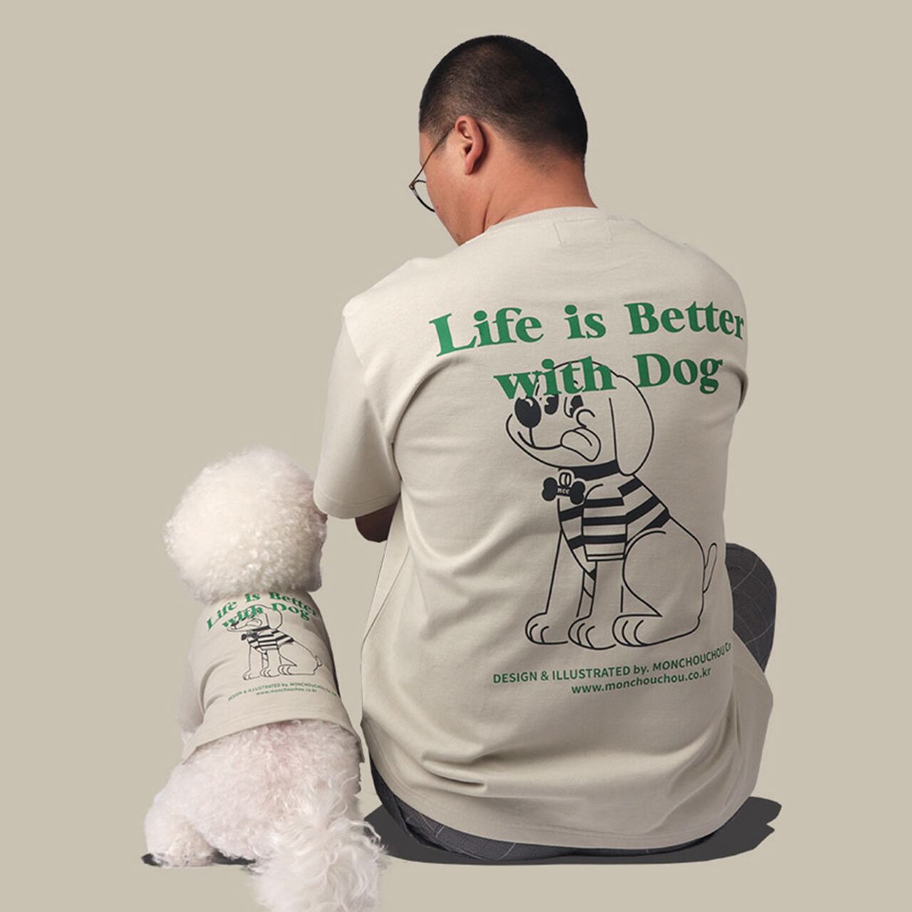 Life is Better with Dog T-shirt-Sand Beige / monchouchou