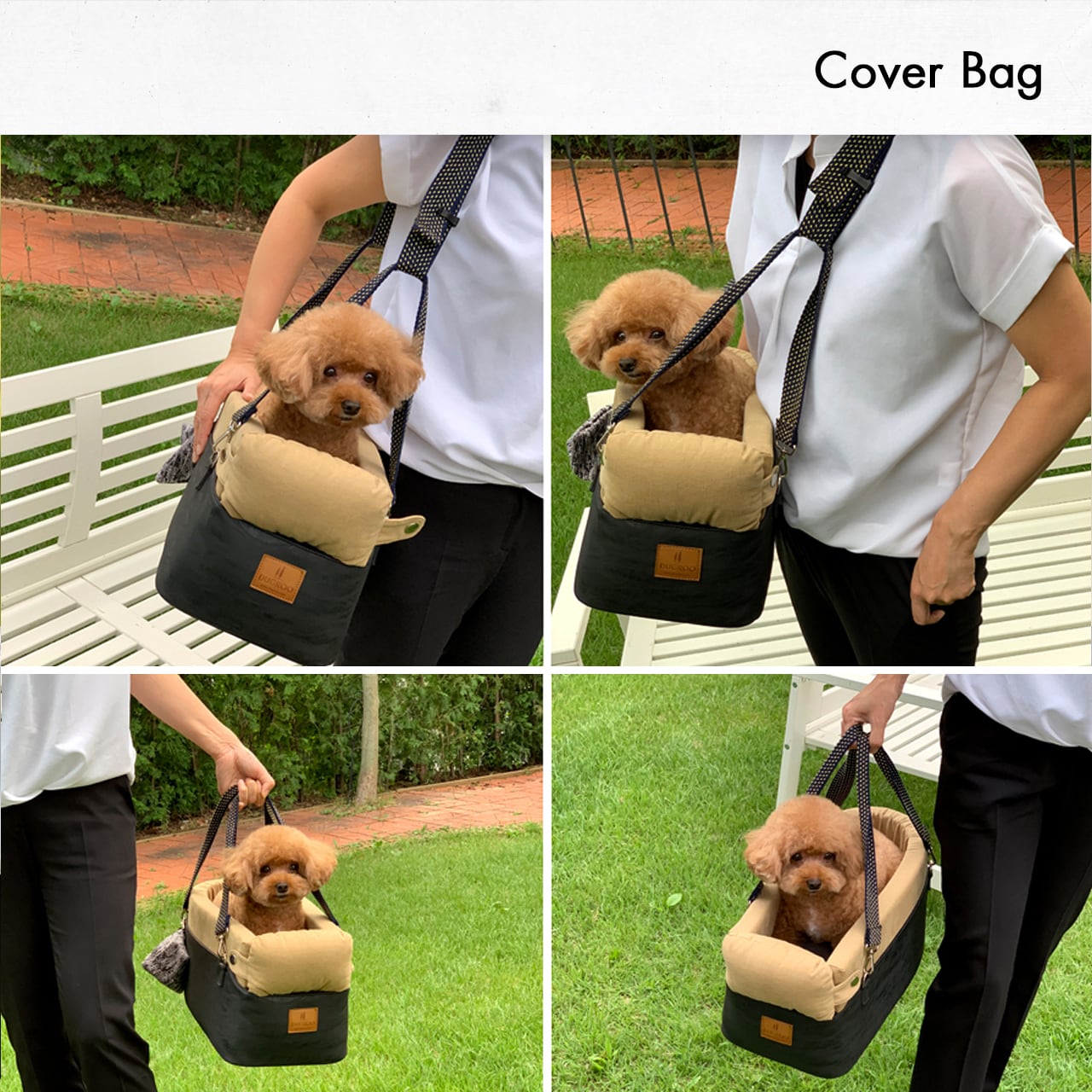 バッグとして使用できる専用カバーバッグ 4通りの持ち方も可能で愛犬が傾きにくく、移動にも使用したい方にはとても便利なバッグです。(写真参照)