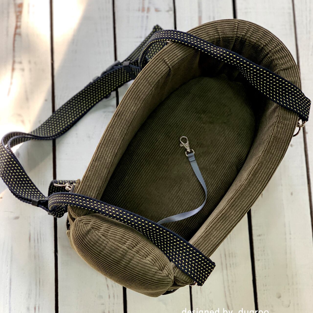 バッグとして使用できる専用カバーバッグ 4通りの持ち方も可能で愛犬が傾きにくく、移動にも使用したい方にはとても便利なバッグです。(写真参照)