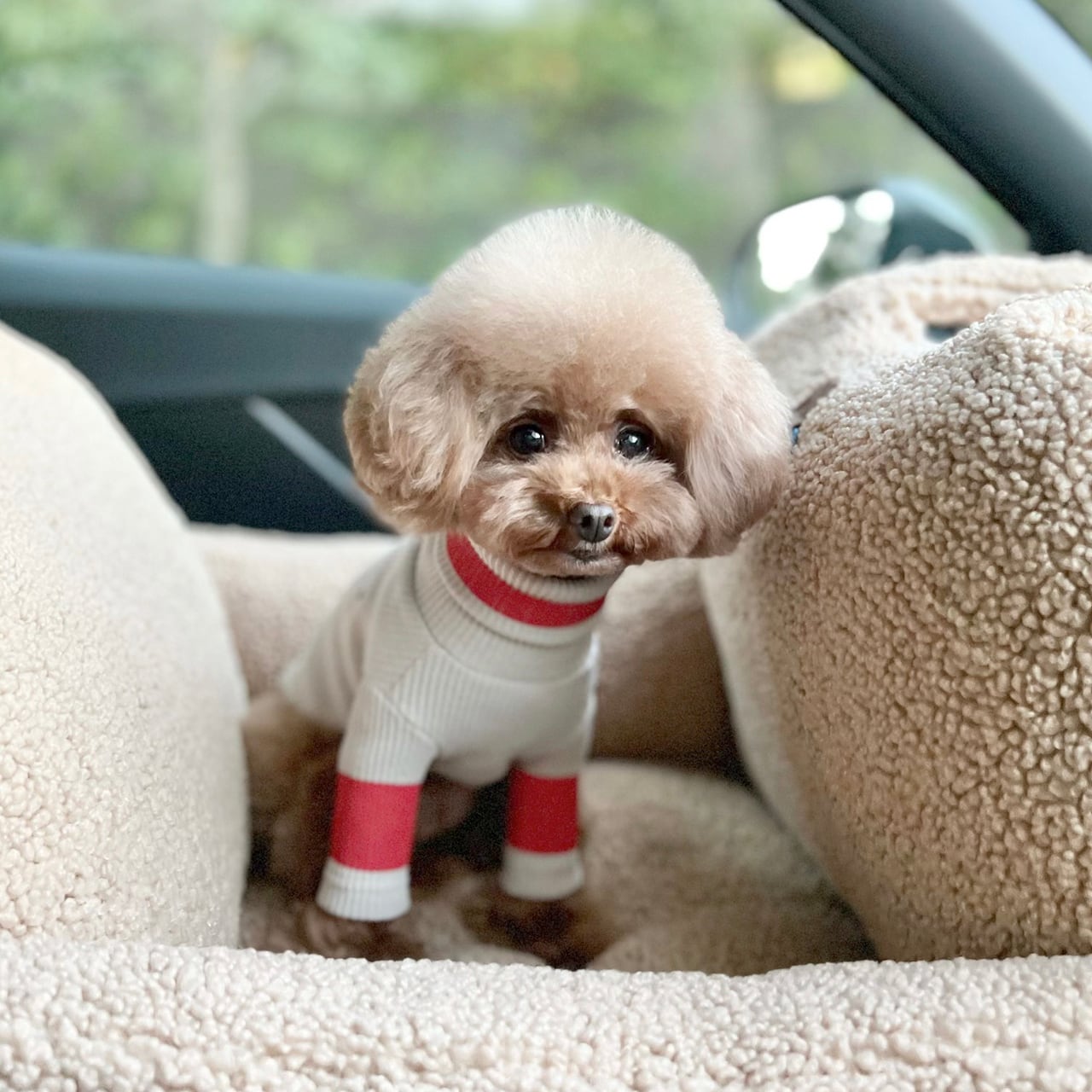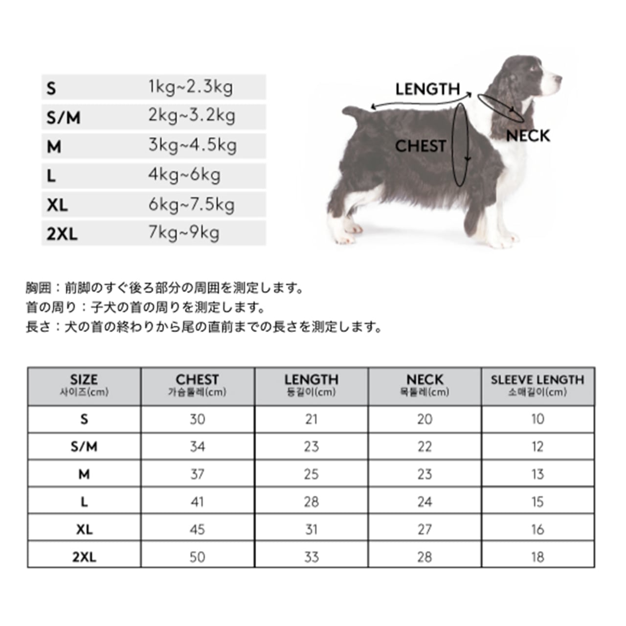 ※写真の中のモデルは1.4kg、2.2kgのトイプードルで、Sサイズを着用しています。