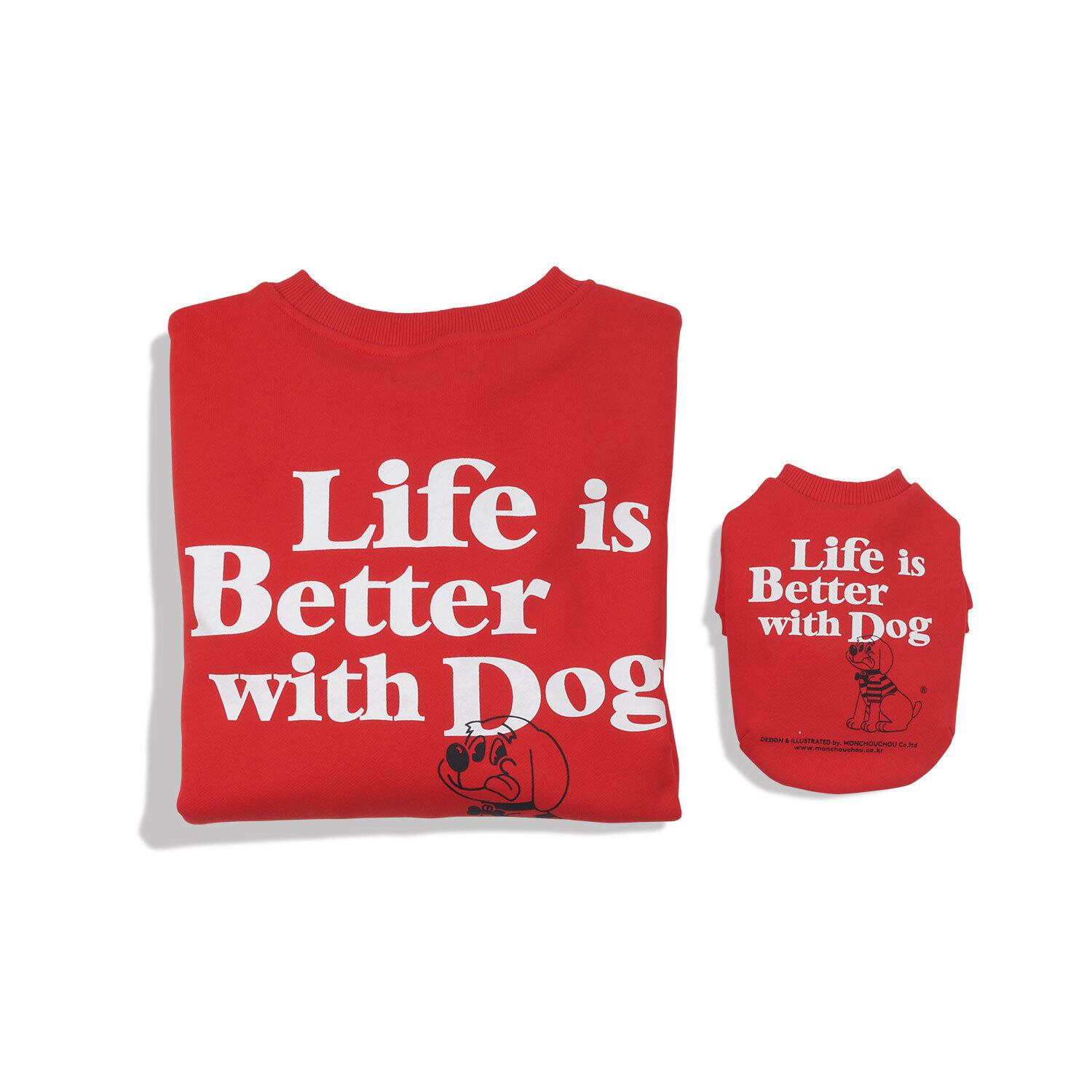 Life is Better with Dog Crew neck for dog(Red) / monchouchou