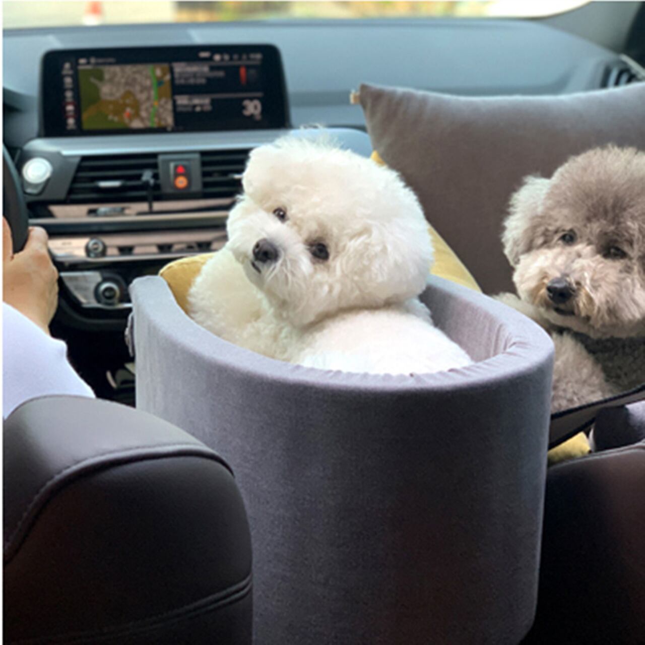 ご注意)運転席と助手席のシート間隔が18cm〜23cmの車両のタイプはSS-Slim(5kg未満のペットにおすすめ)となります。「Console Box Dog Car Seat SS-Slim」をご購入ください。