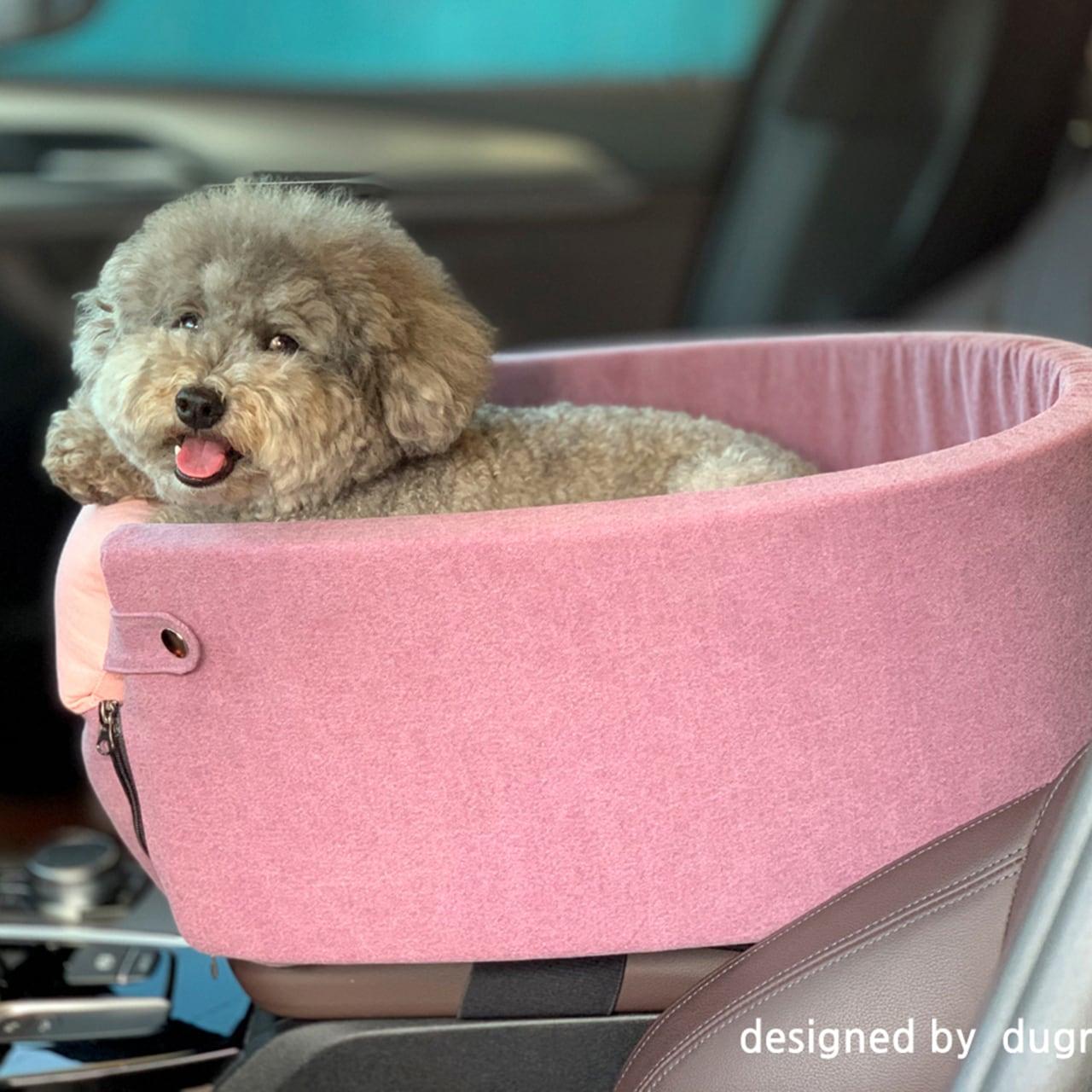 ご注意)運転席と助手席のシート間隔が18cm〜23cmの車両のタイプはSS-Slim(5kg未満のペットにおすすめ)となります。「Console Box Dog Car Seat SS-Slim」をご購入ください。