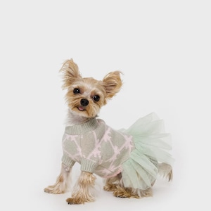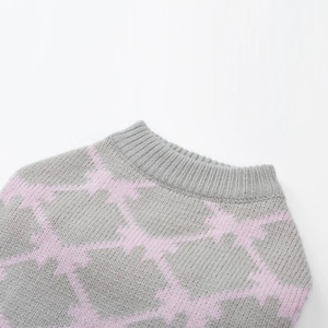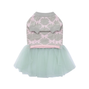 JACQUARD BOWKNOT JUMPER WITH SKIRT(Gray & Mint)
