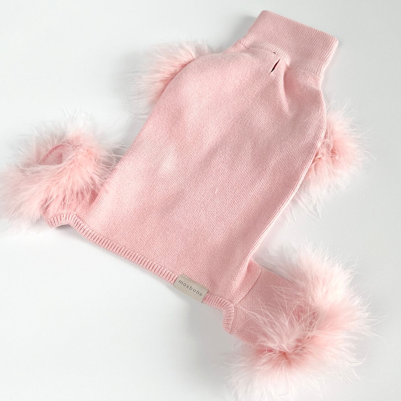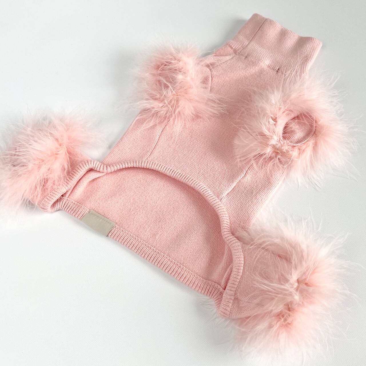 足のフェザーが可愛らしさをアップ!フェザーニットワンピです。(ロンパース型)
