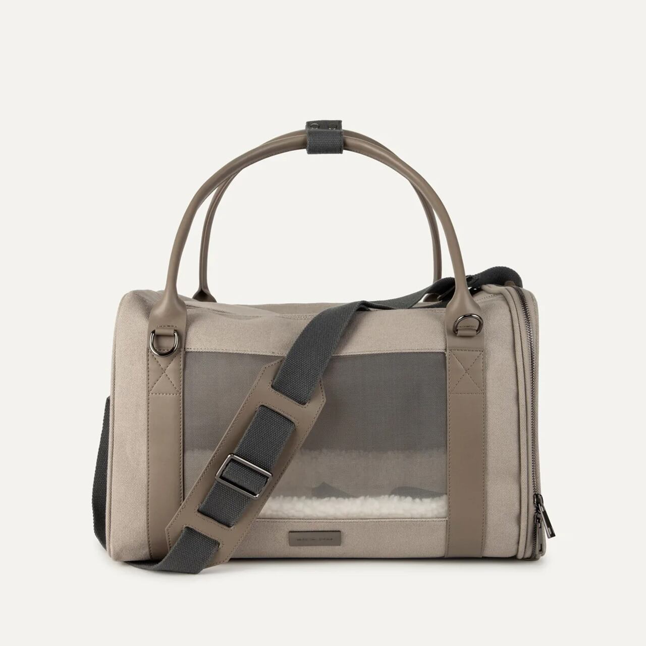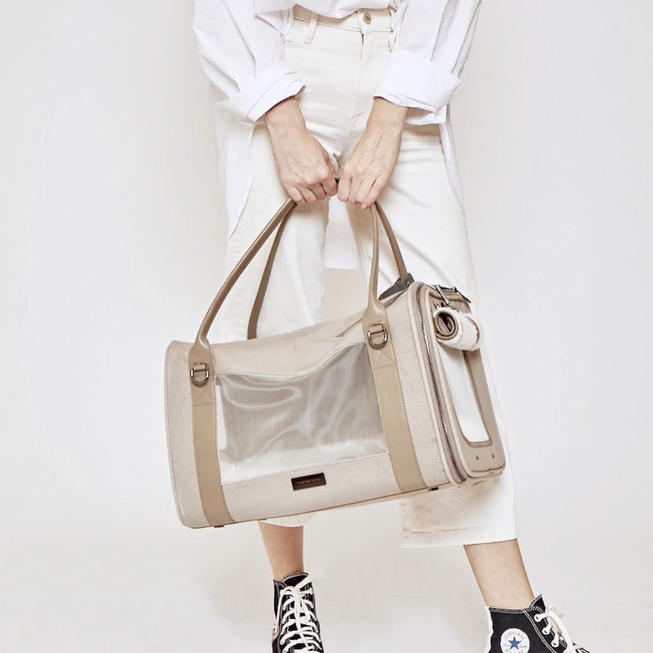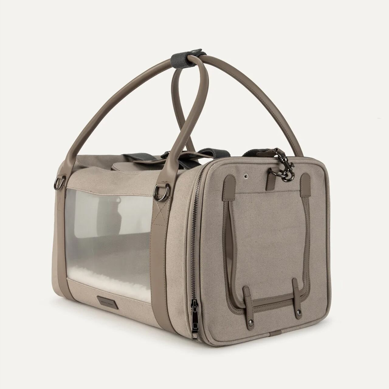 本革のハンドルにプレミアムな厚手コットンキャンバス地で製作されたキャリーバッグ。