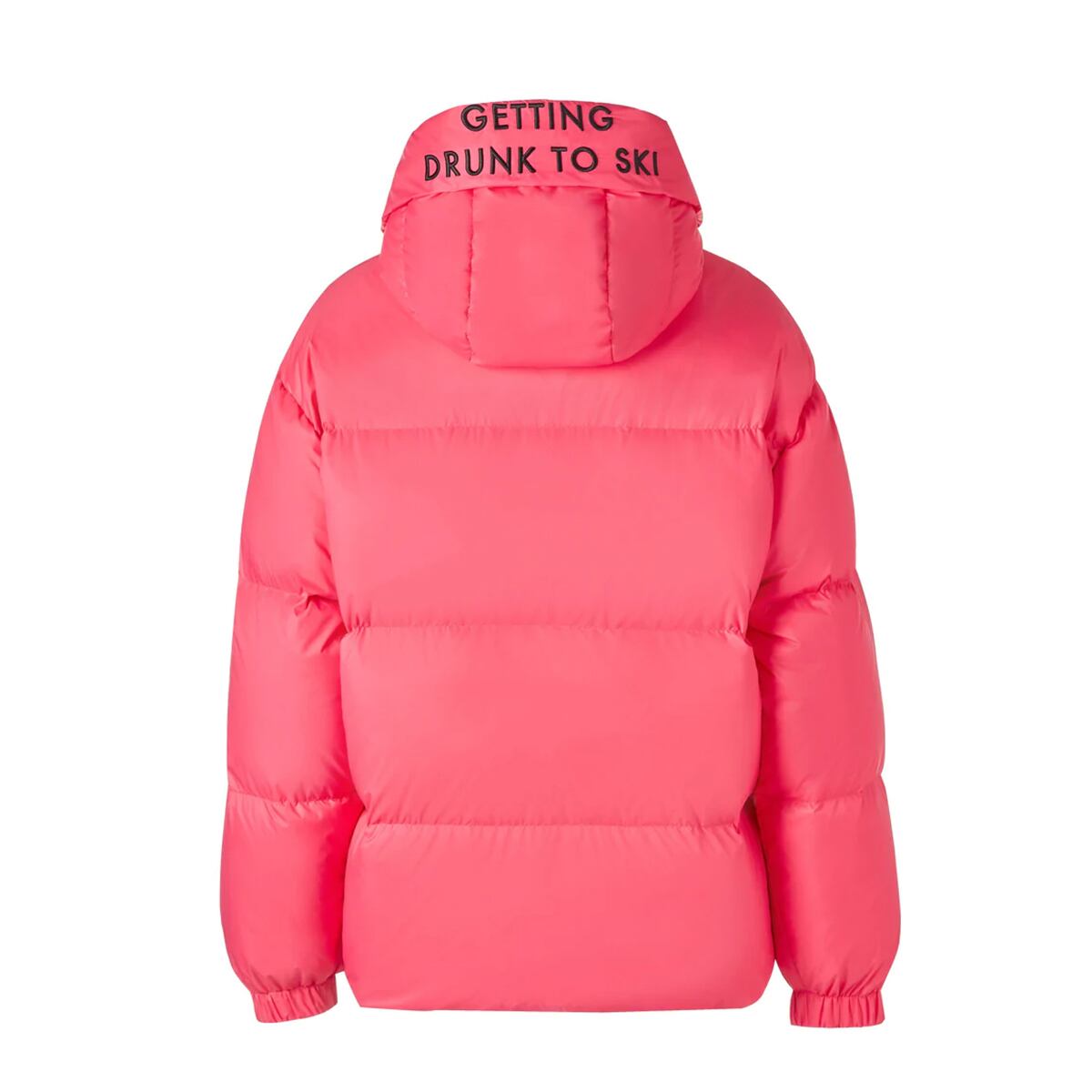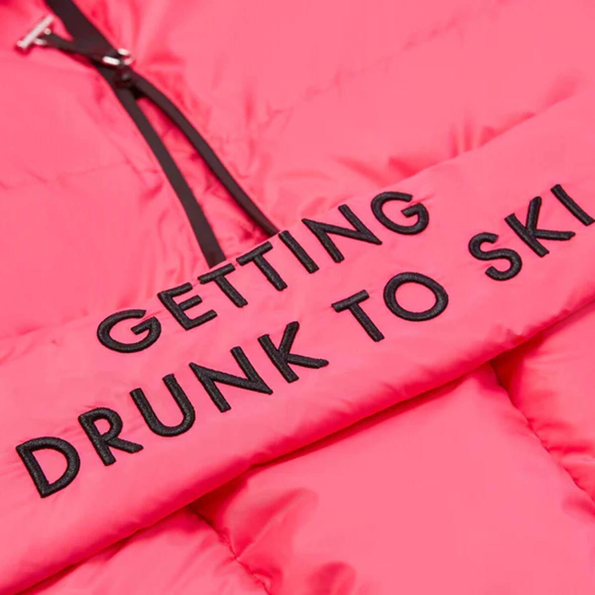 愛犬と同じデザインで、フードに「Getting Drunk to Ski」のスローガンが付いています。