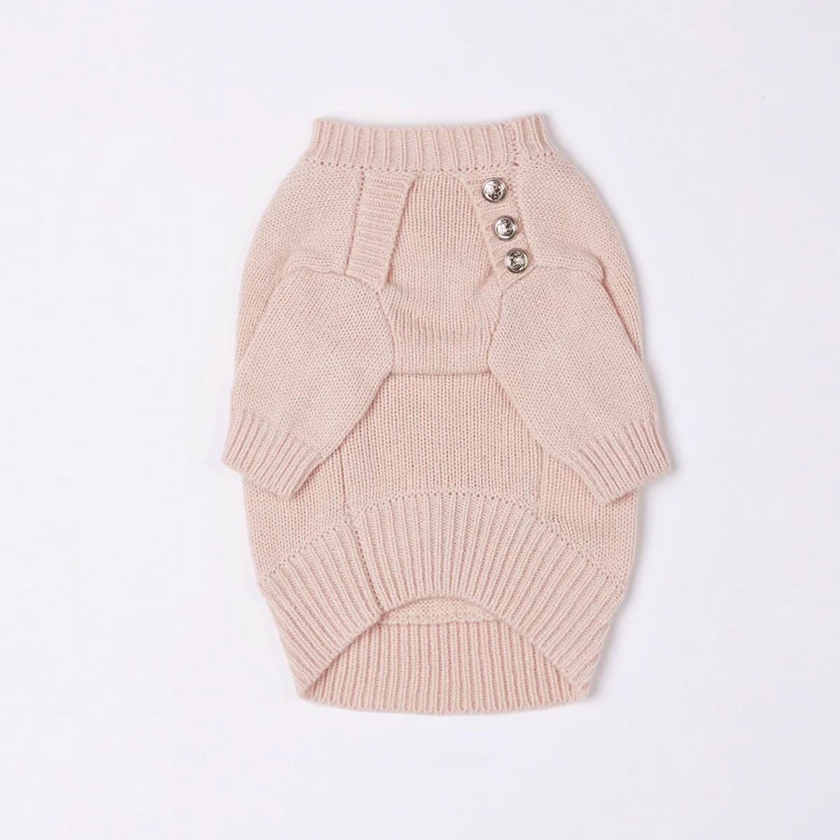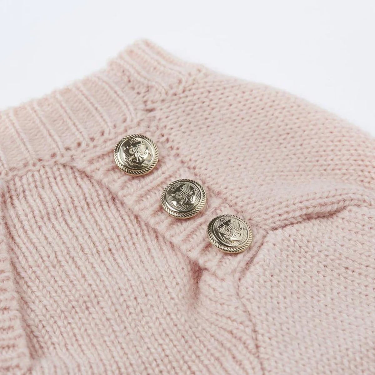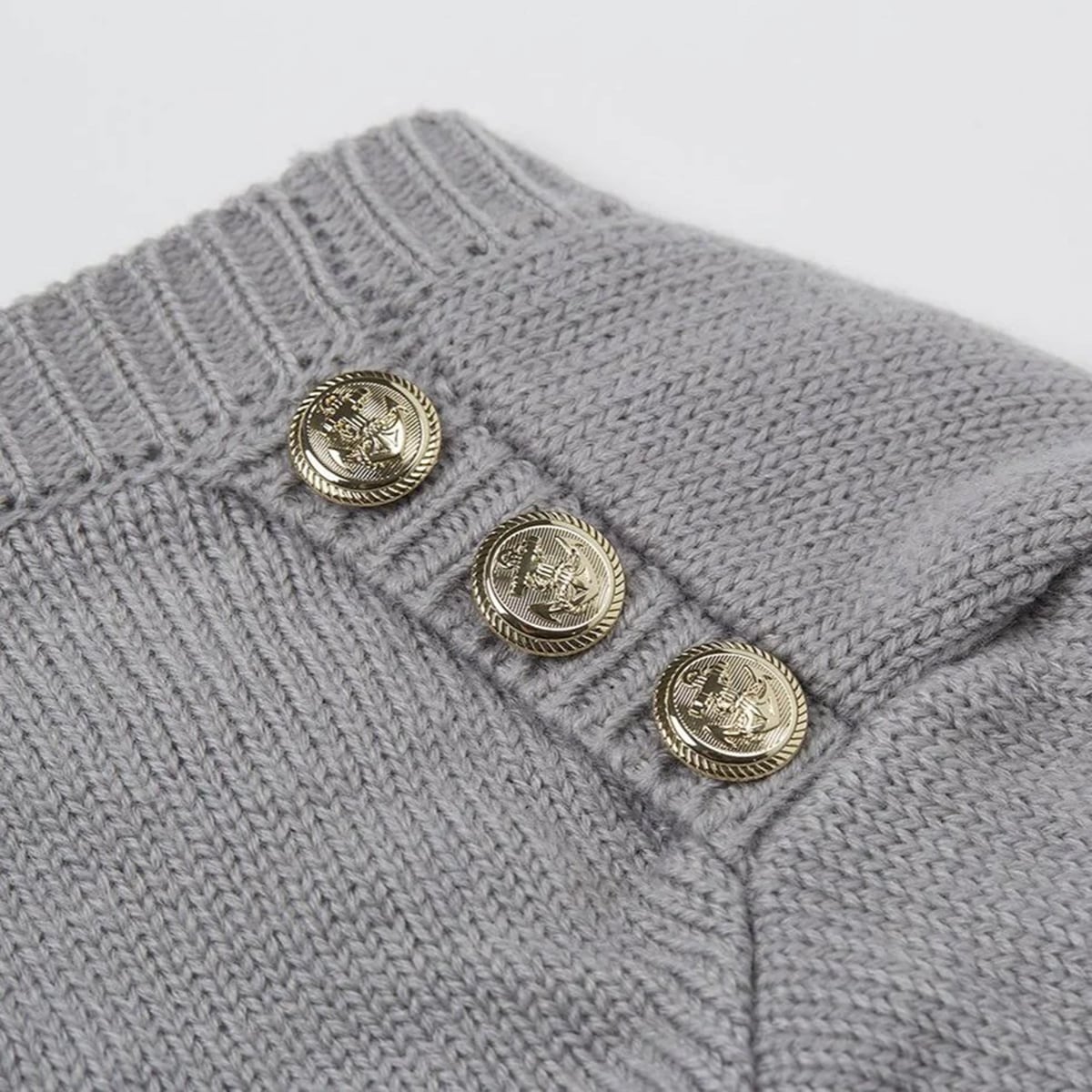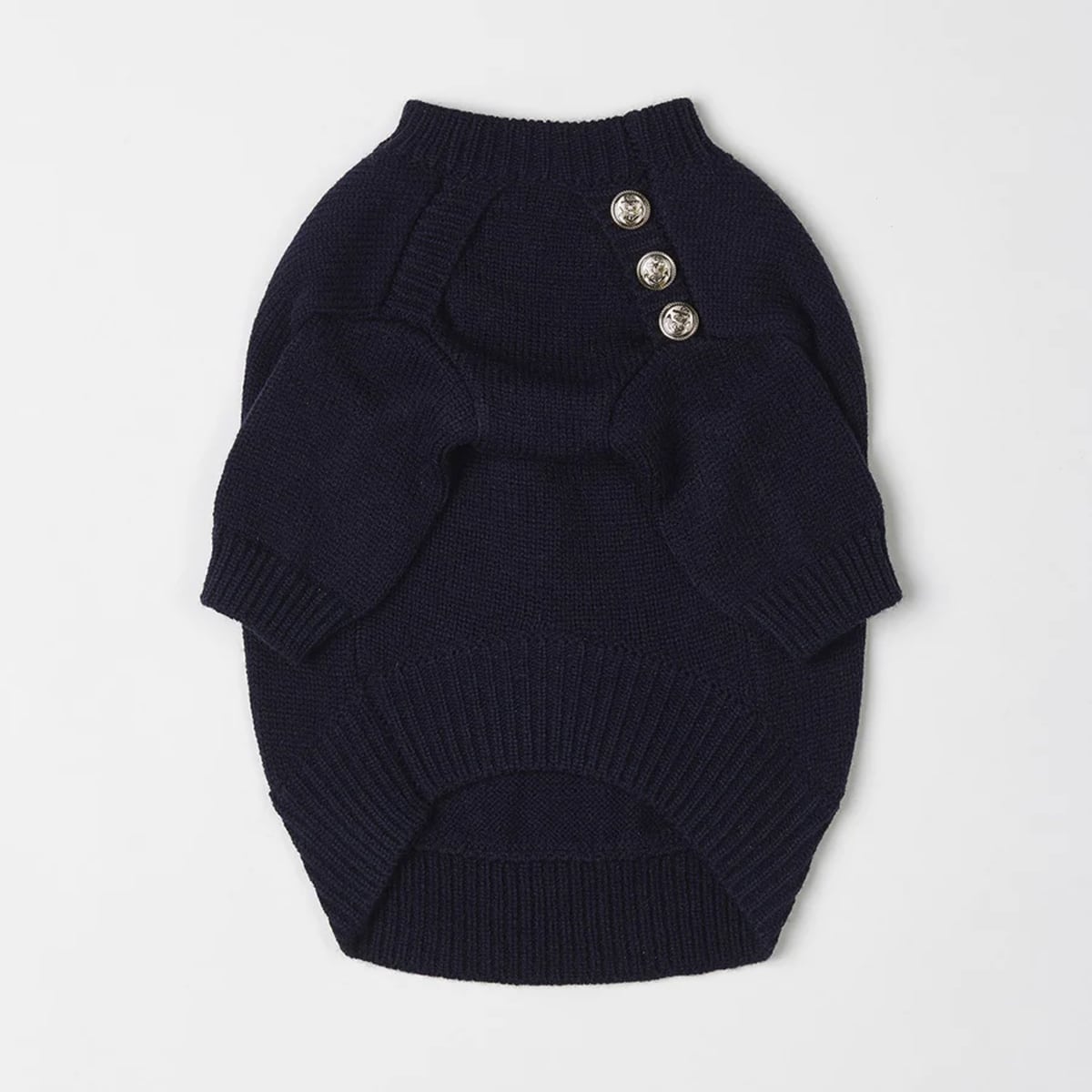 ロンドンの大注目のブランド、OVER GLAMの3つのイカリボタンがエレガントなデザインの袖ありのセーターです。