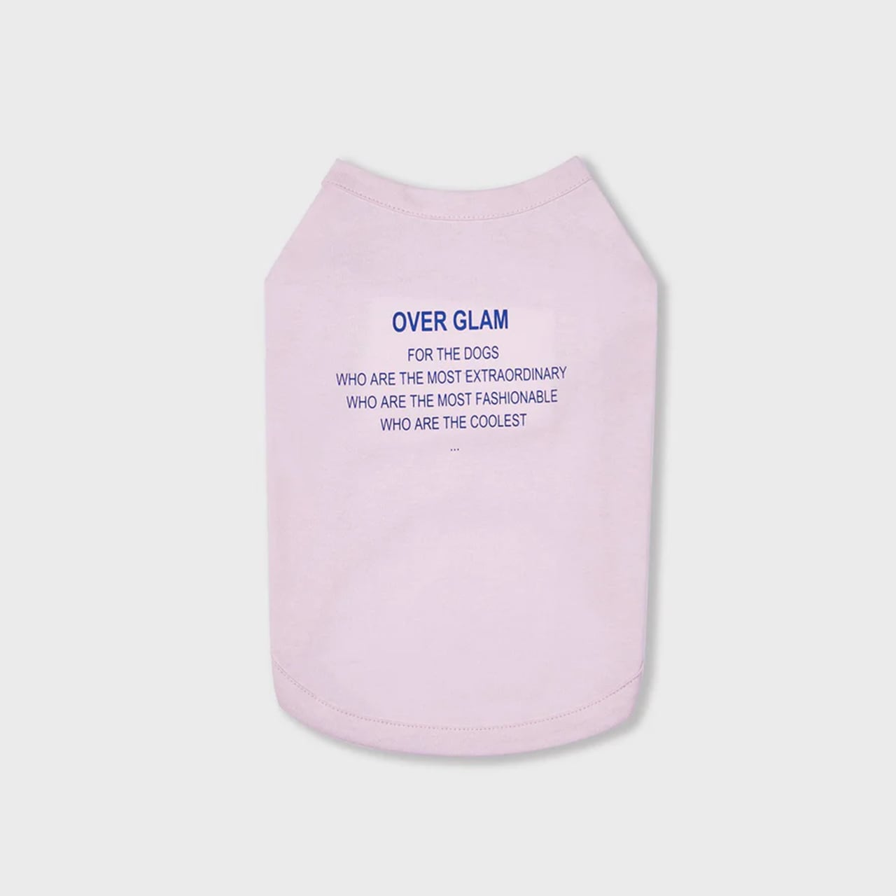 Pink:背中にOVER GLAMとテキスト入り、テキストと袖のストライプがブルーカラー