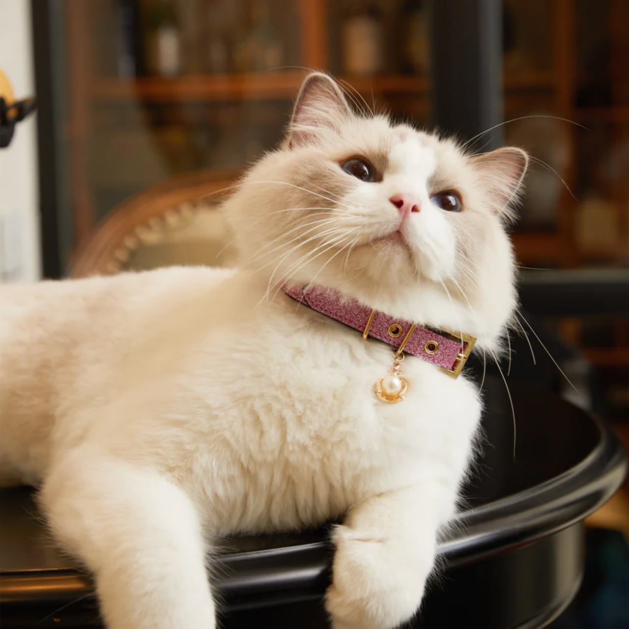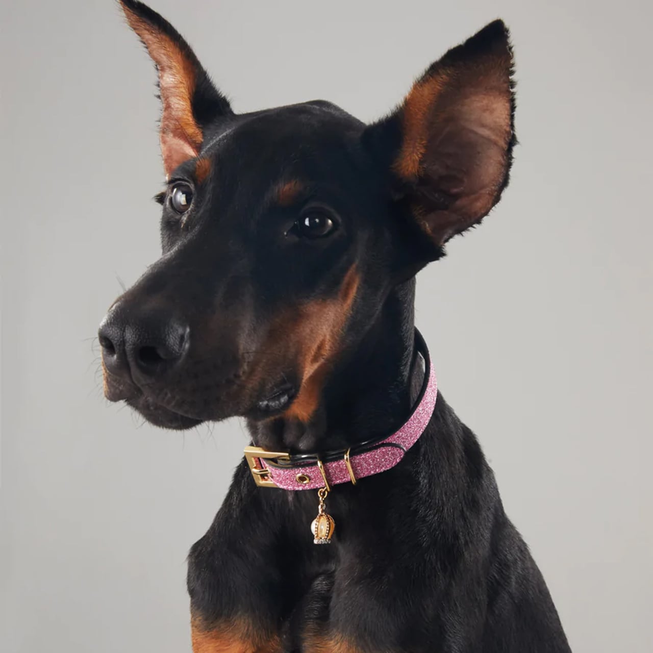 ローズグリッターのグラマラスレザーカラー。王冠と金色の仕上げが付属しています。