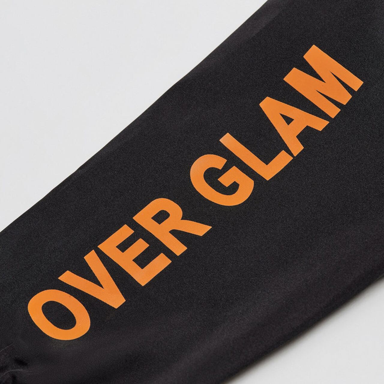 背中にロゴタグと腕に大きなOVER GLAMのプリントロゴが施されています。