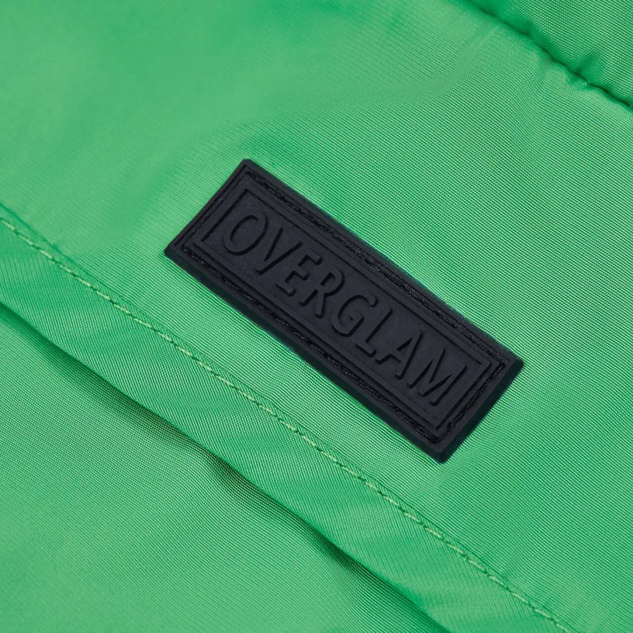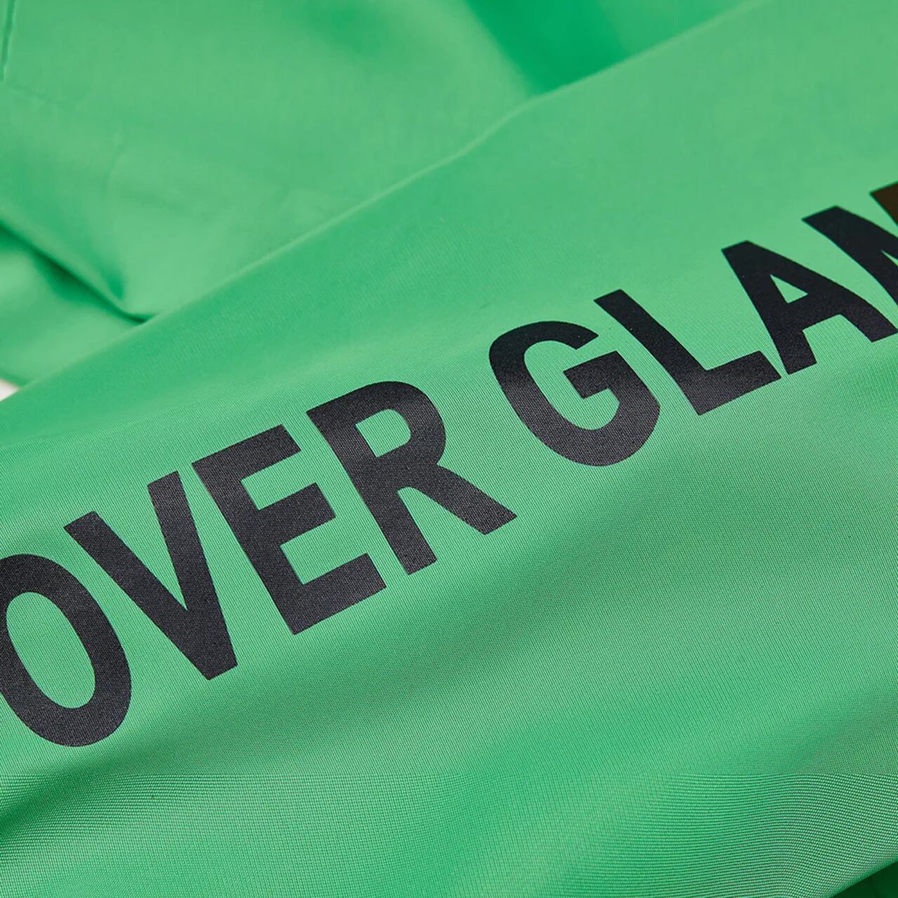 背中にロゴタグと腕に大きなOVER GLAMのプリントロゴが施されています。