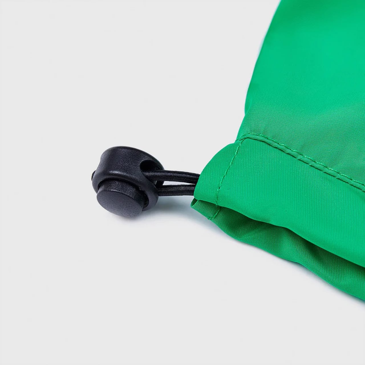 ロンドンの大注目のブランド、OVER GLAMのパーカー付きの完全防水の薄手のコート。
