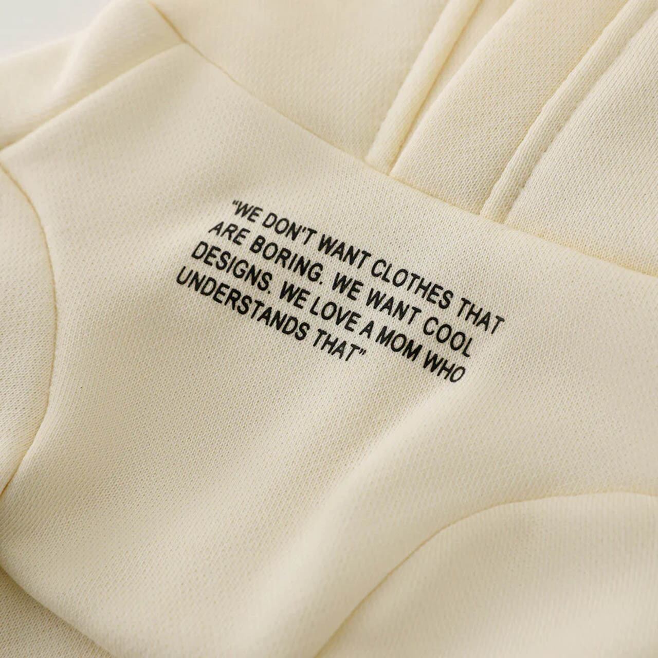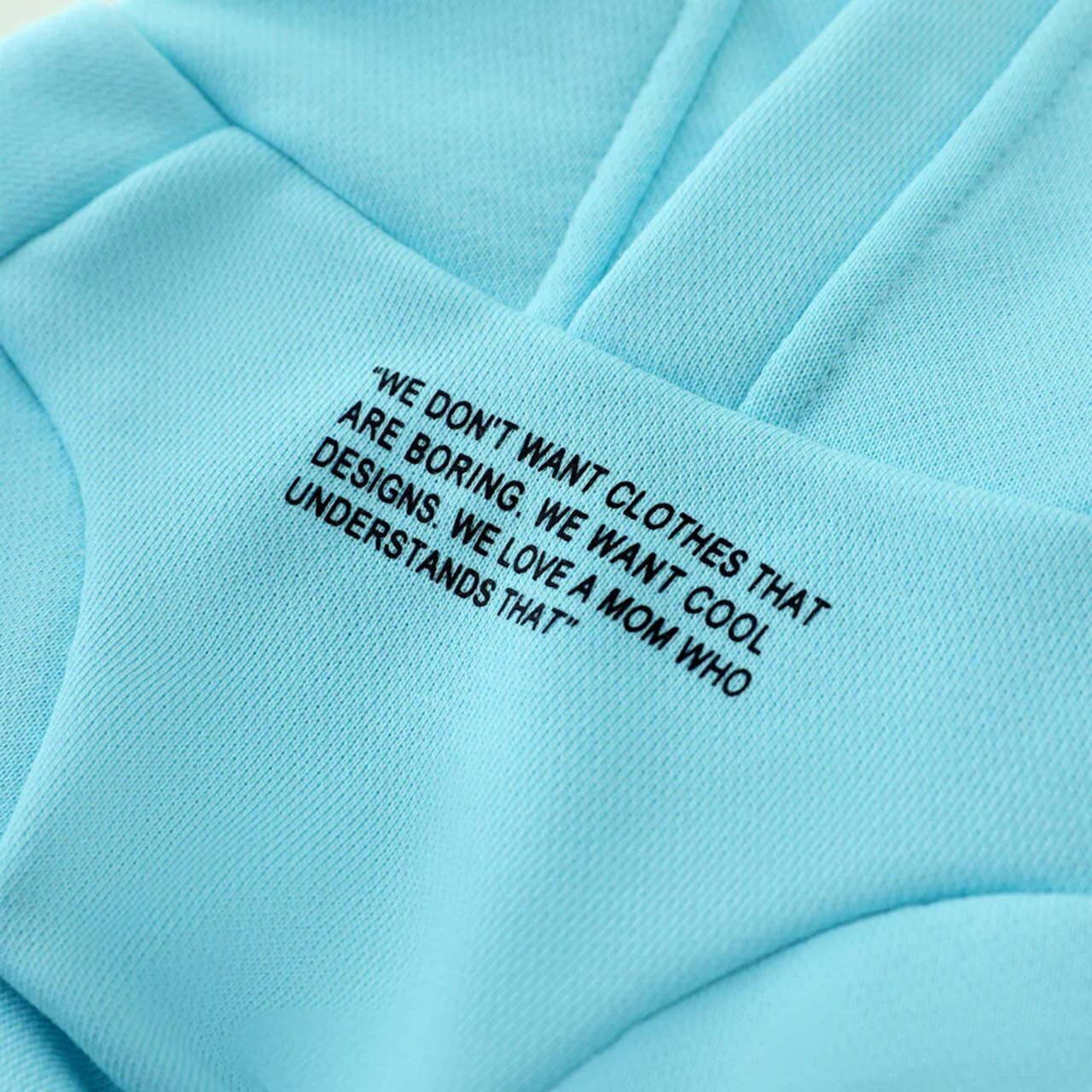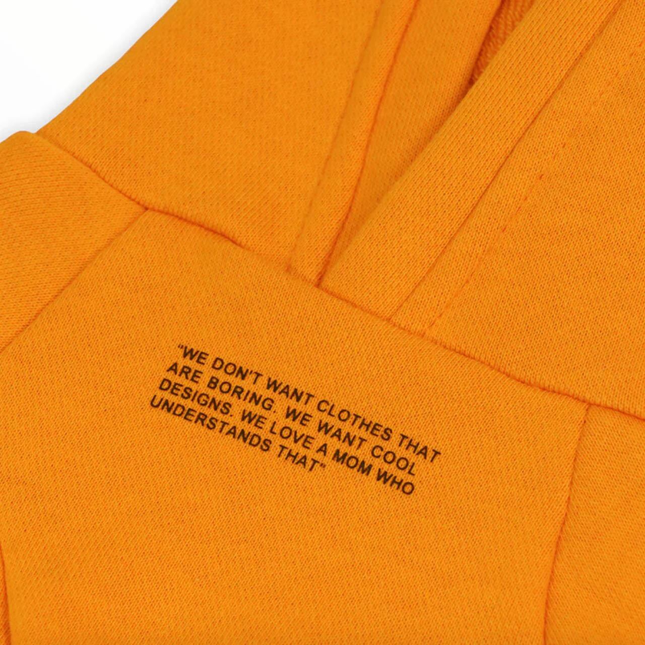 胸にスローガンが入ったスリーブパーカー。クリーム、ベビーブルー、パープル、オレンジからお選びいただけます。