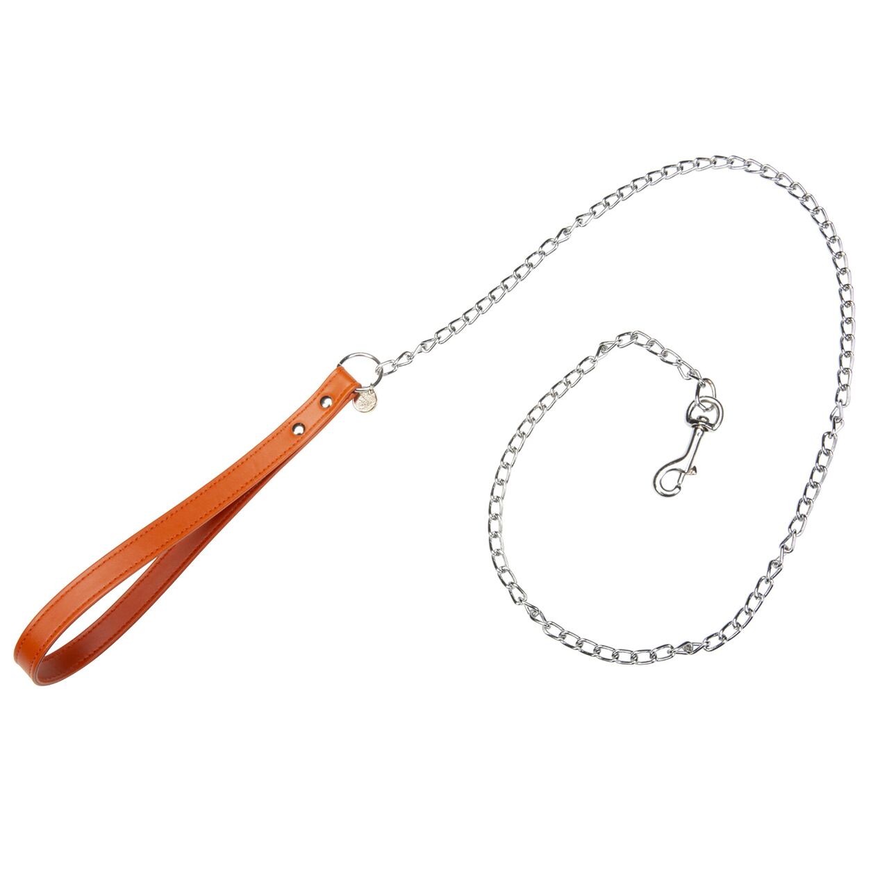柔らかい持ち手のチェーンのシンプルでおしゃれなリード。持ち手は横幅が1.5cmになって金具はすべてシルバー仕上げのチェーンのリードになっています。