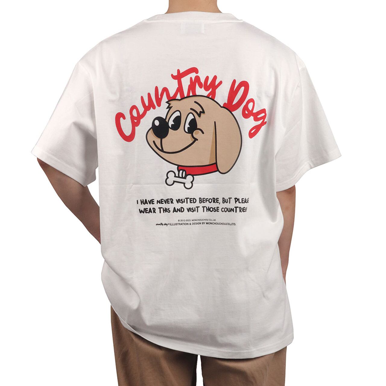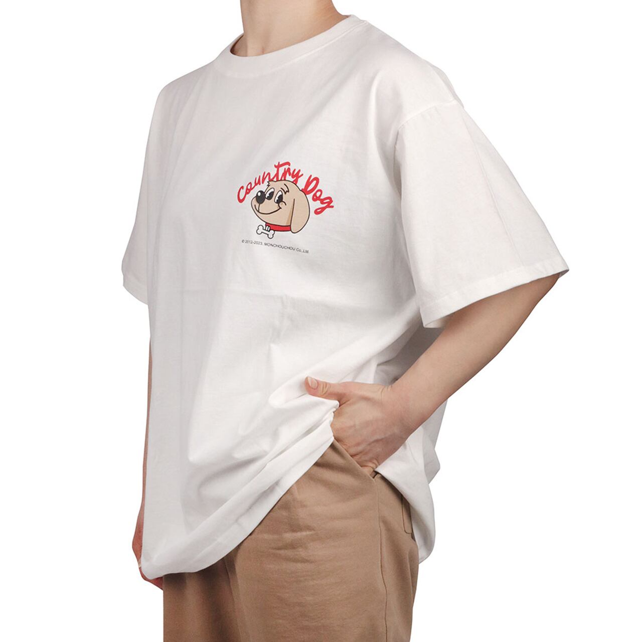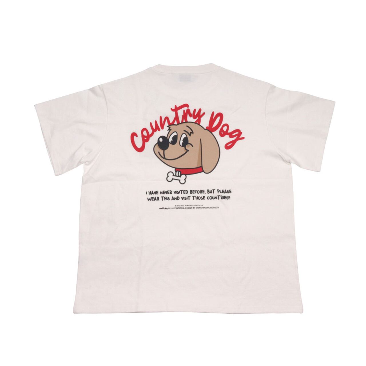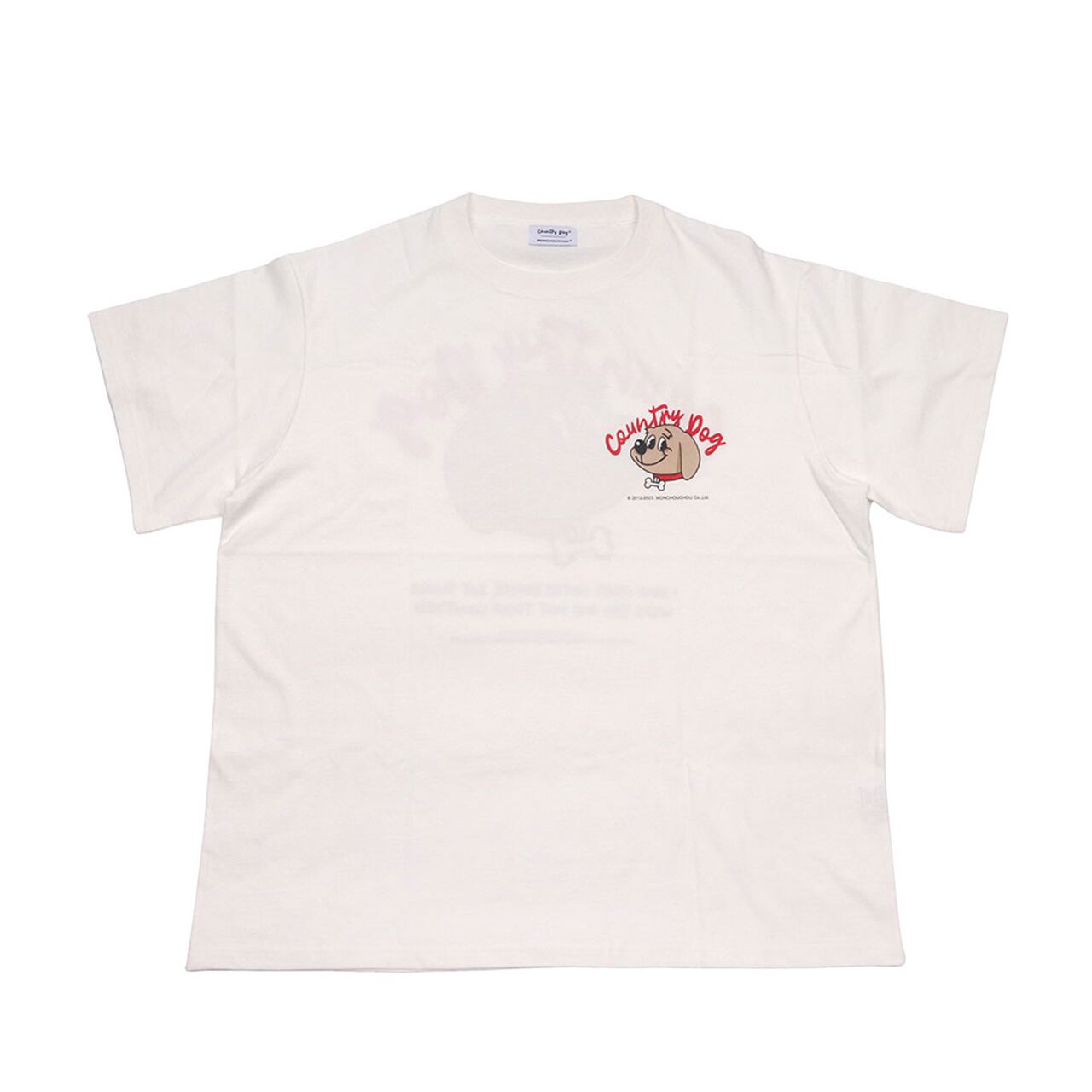 カントリードッグのキャラクターが魅力的なTシャツは男女兼用で、ゆったりとしたスタイルでどんな体格にもフィットするフリーサイズです。