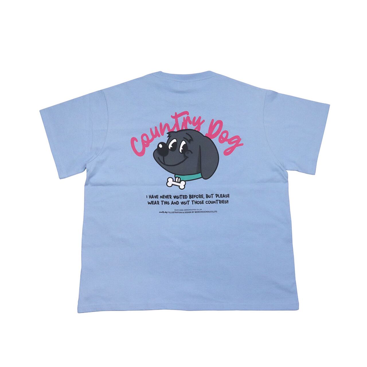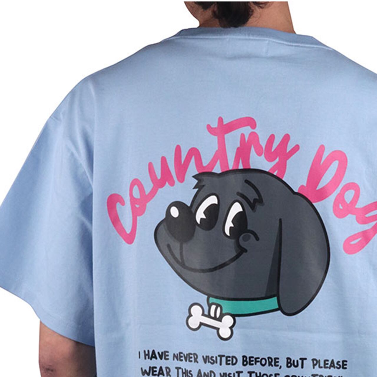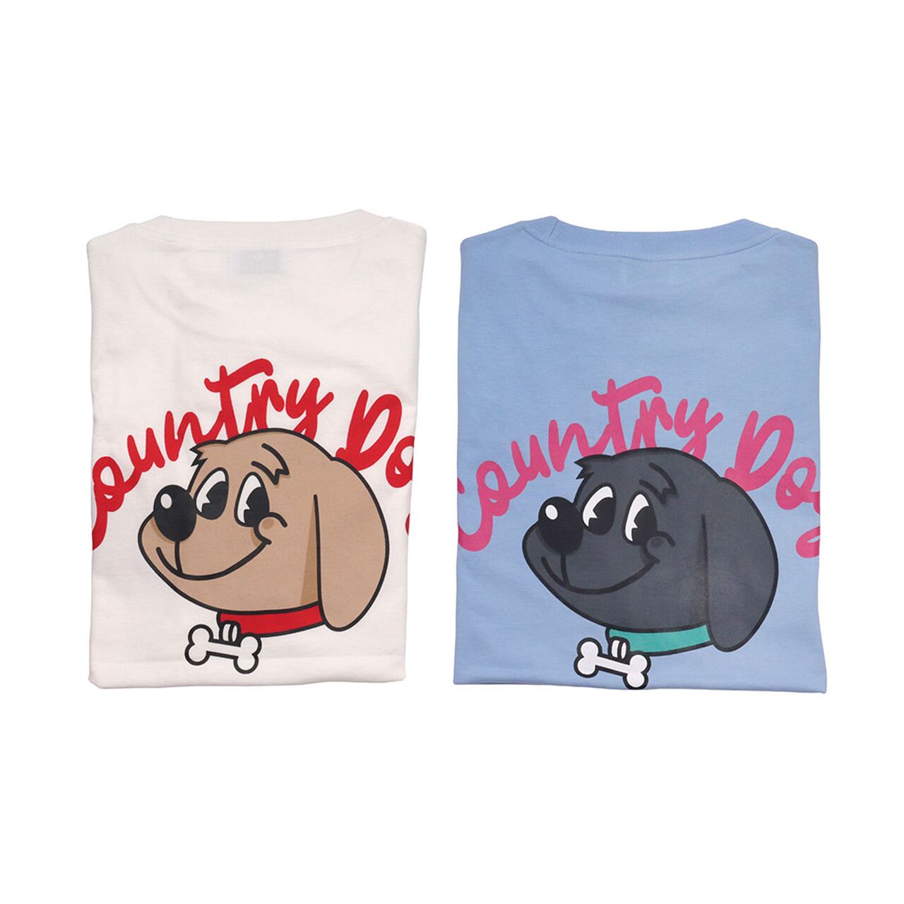 カントリードッグのキャラクターが魅力的なTシャツは男女兼用で、ゆったりとしたスタイルでどんな体格にもフィットするフリーサイズです。
