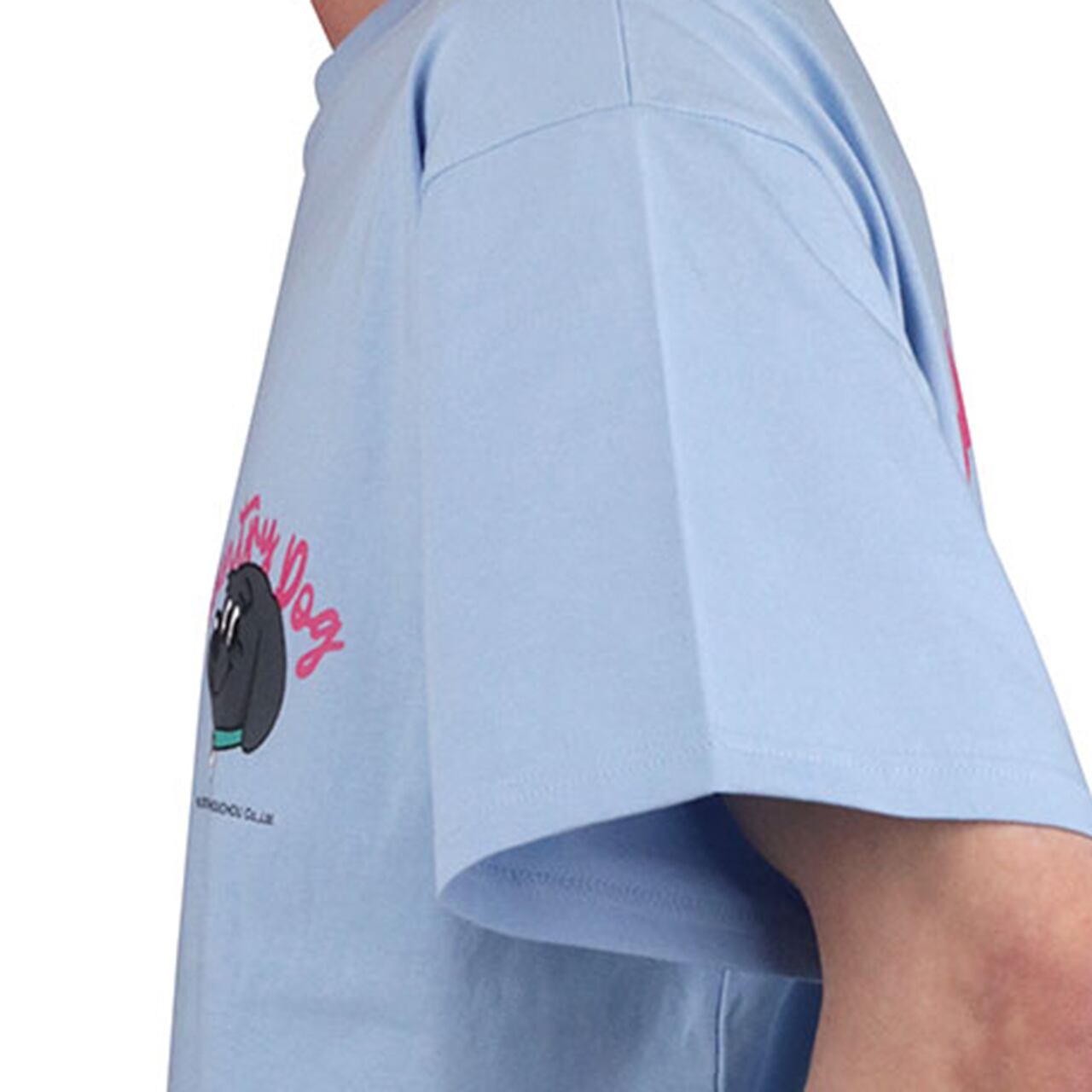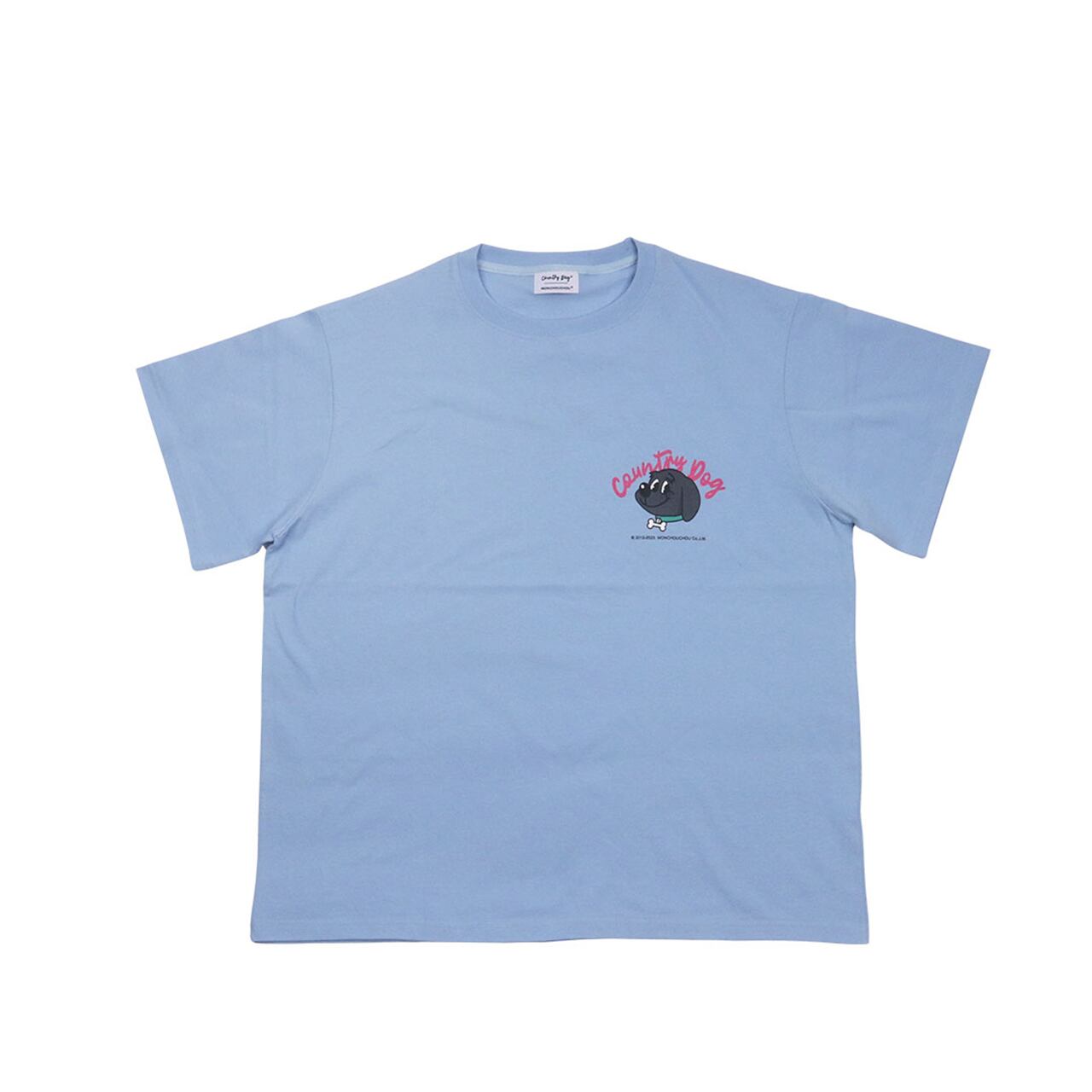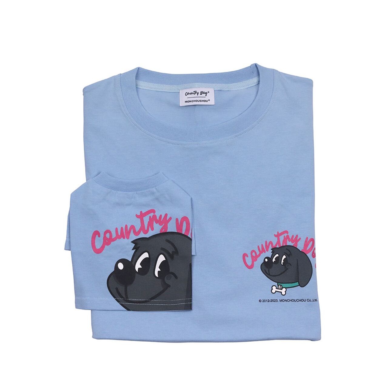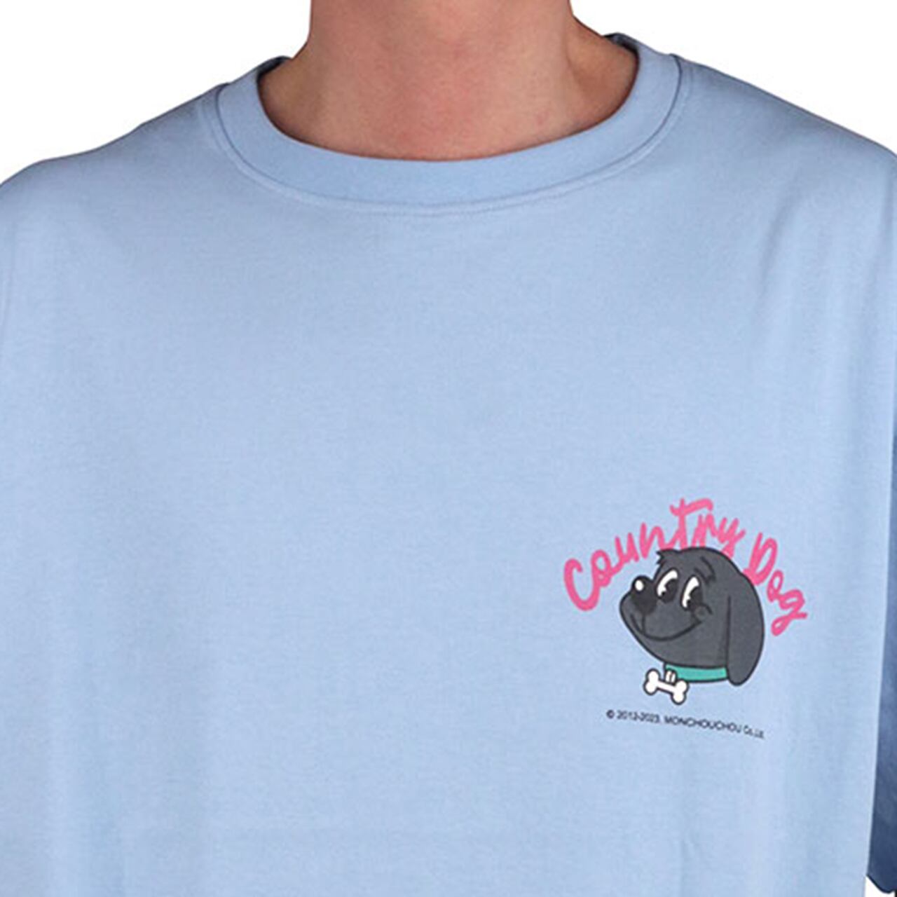 カントリードッグのキャラクターが魅力的なTシャツは男女兼用で、ゆったりとしたスタイルでどんな体格にもフィットするフリーサイズです。