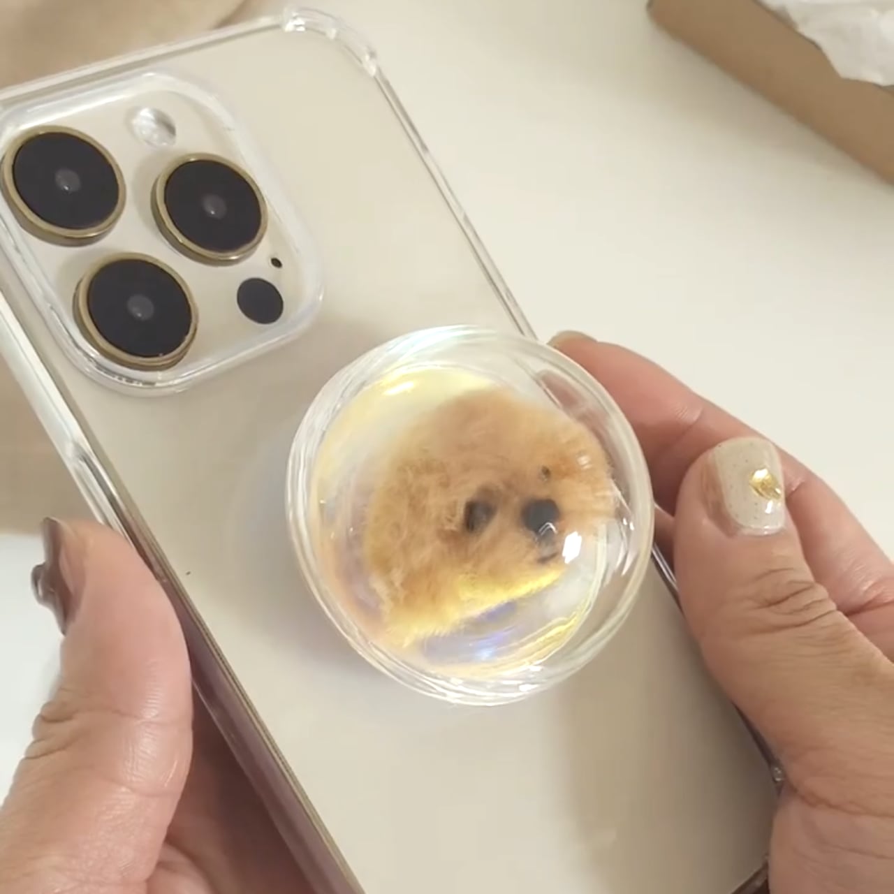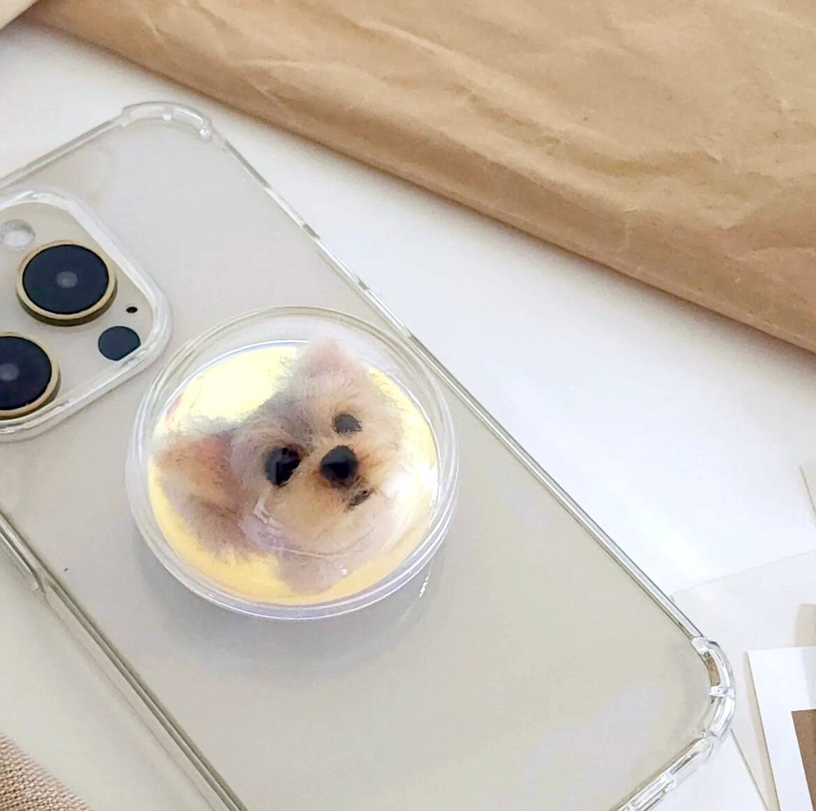 羊毛フエルトの教室などの指導をしている超人気の韓国羊毛フエルトデザイナーが1点ごとのハンドメイドで羊毛フエルトの愛犬の顔が入ったスマートフォングリップをお作りいたします。