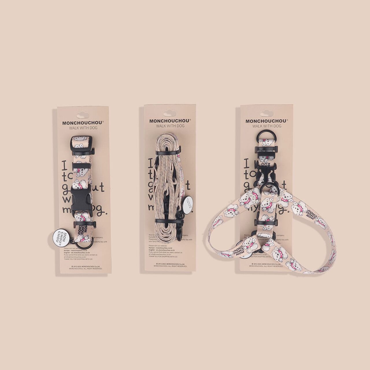ハーネスと同じデザインで首輪とリーシュのご用意がございます。