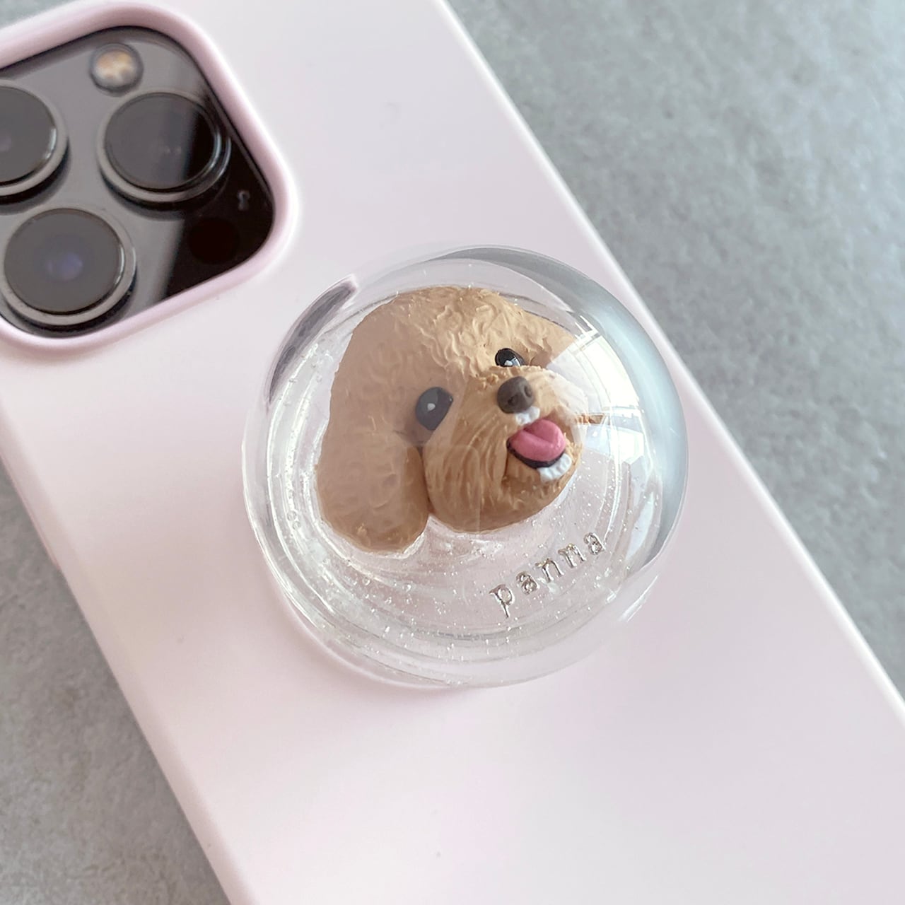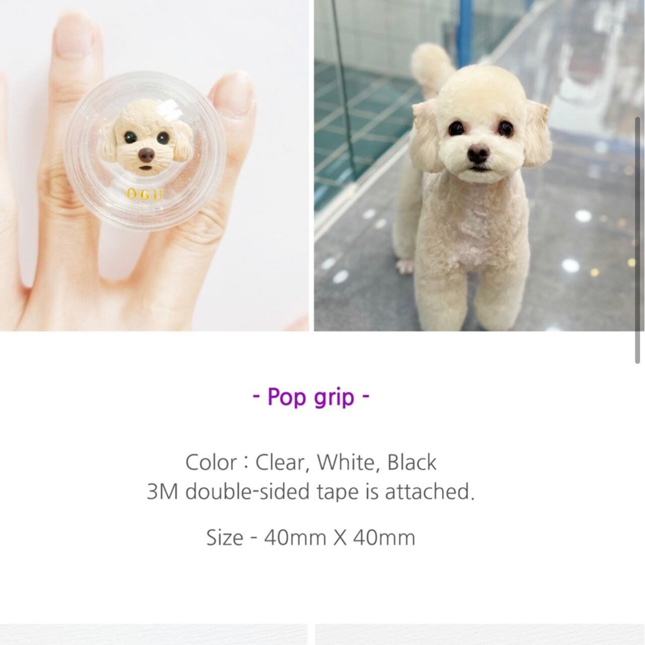 お客様からお送りいただいたペットちゃんの写真を元に、人気の造形デザイナーが1点ごとのハンドメイドで愛犬・愛猫・ペットちゃんの顔のスマートフォングリップをお作りいたします。(日本独占販売)