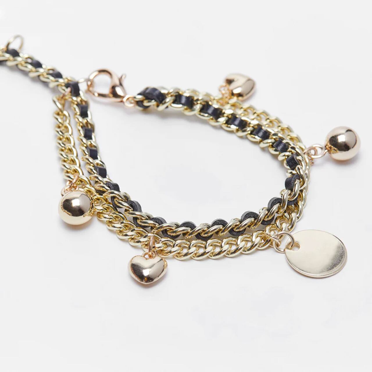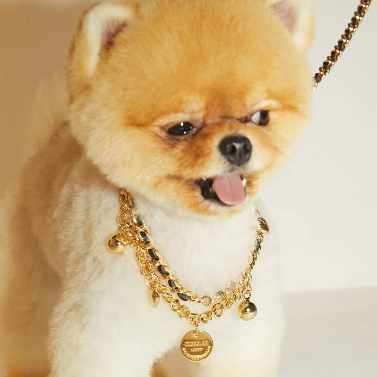 リードとカラー、またはリードのみとしても使用可能なゴールドと革のチェーンタイプ