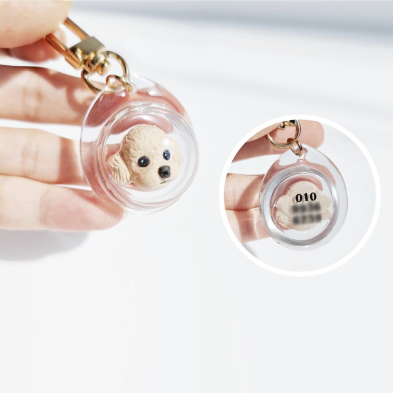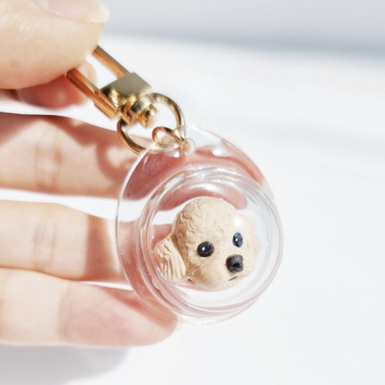 お客様からお送りいただいたペットちゃんの写真を元に、人気の造形デザイナーが1点ごとのハンドメイドで愛犬・愛猫・ペットちゃんの顔のタグキーをお作りいたします。(日本独占販売)