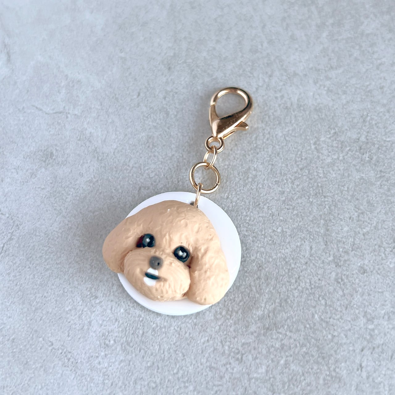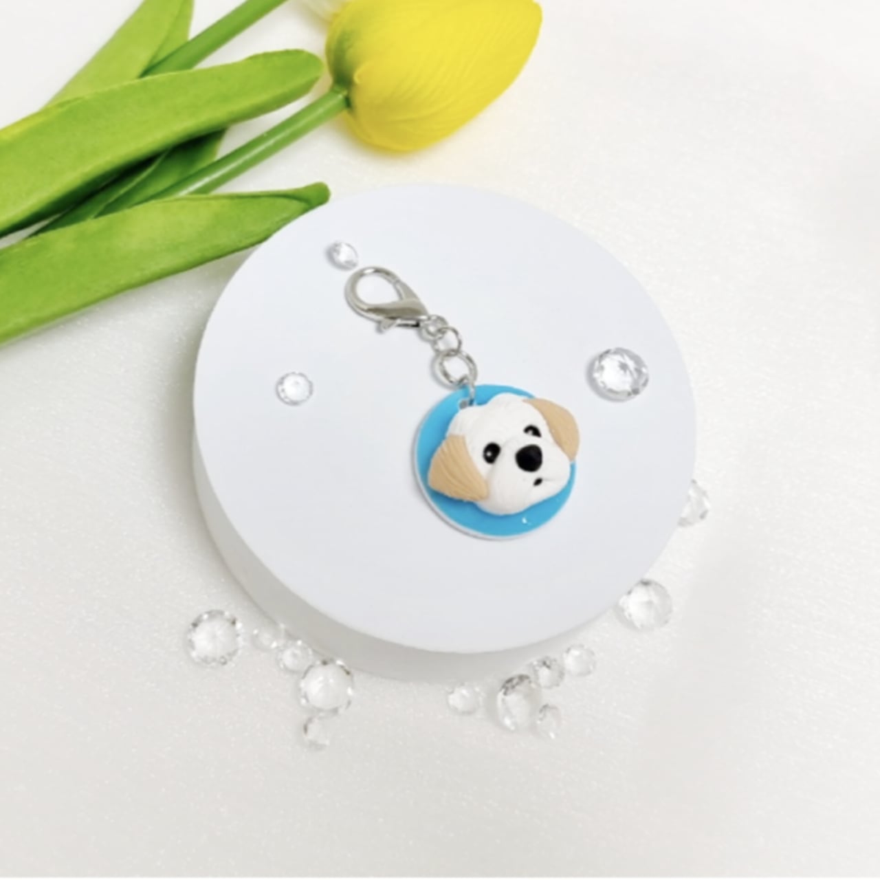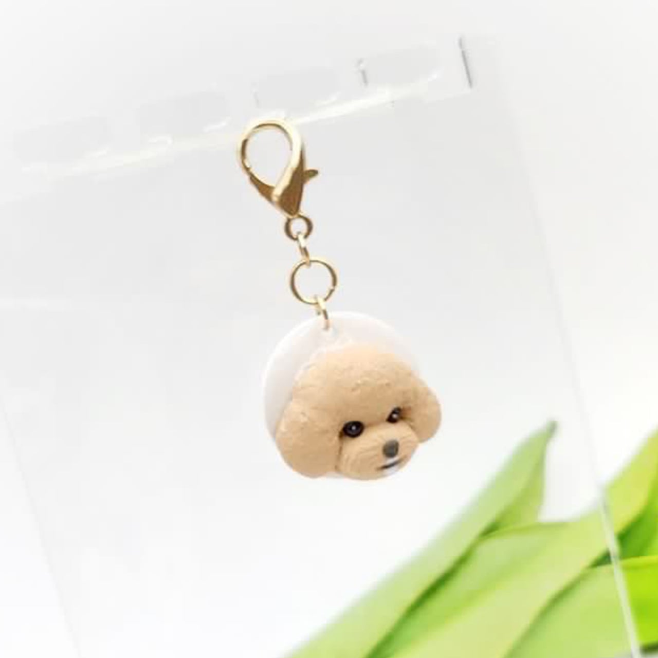 お客様からお送りいただいたペットちゃんの写真を元に、人気の造形デザイナーが1点ごとのハンドメイドで愛犬・愛猫・ペットちゃんの顔のタグキーをお作りいたします。(日本独占販売)