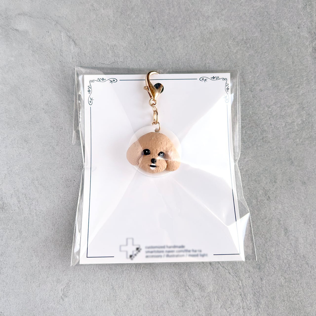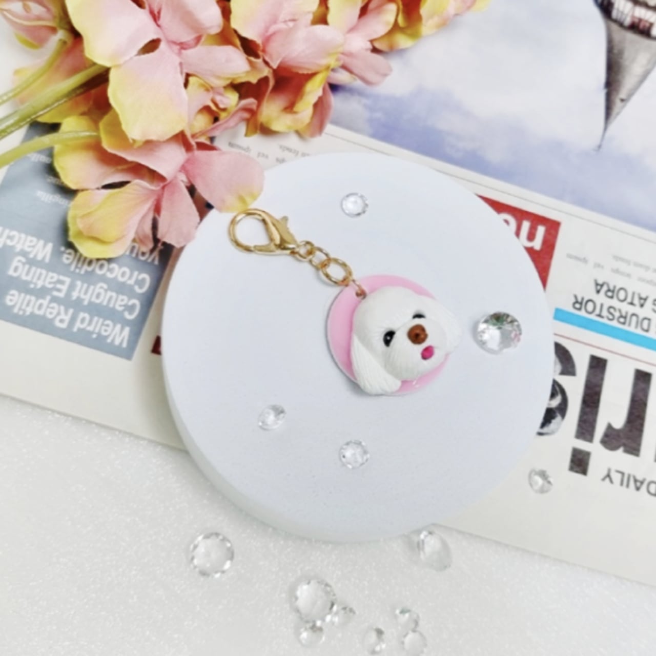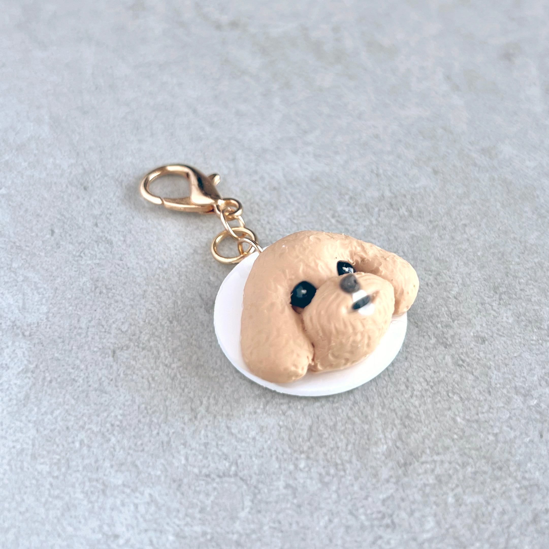 お客様からお送りいただいたペットちゃんの写真を元に、人気の造形デザイナーが1点ごとのハンドメイドで愛犬・愛猫・ペットちゃんの顔のタグキーをお作りいたします。(日本独占販売)