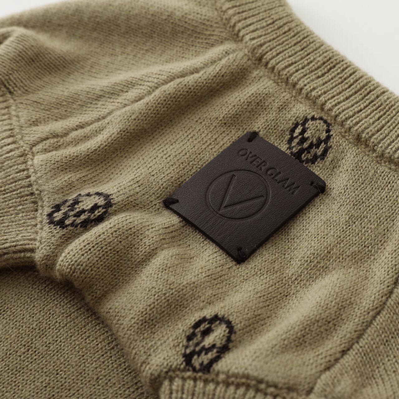 OVER GLAMの特別なロゴアイコンが全面にデザインされたカーキカラーのニット。
